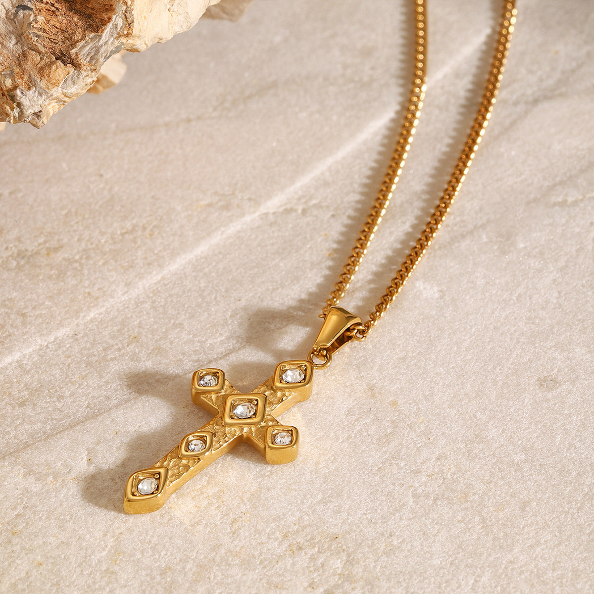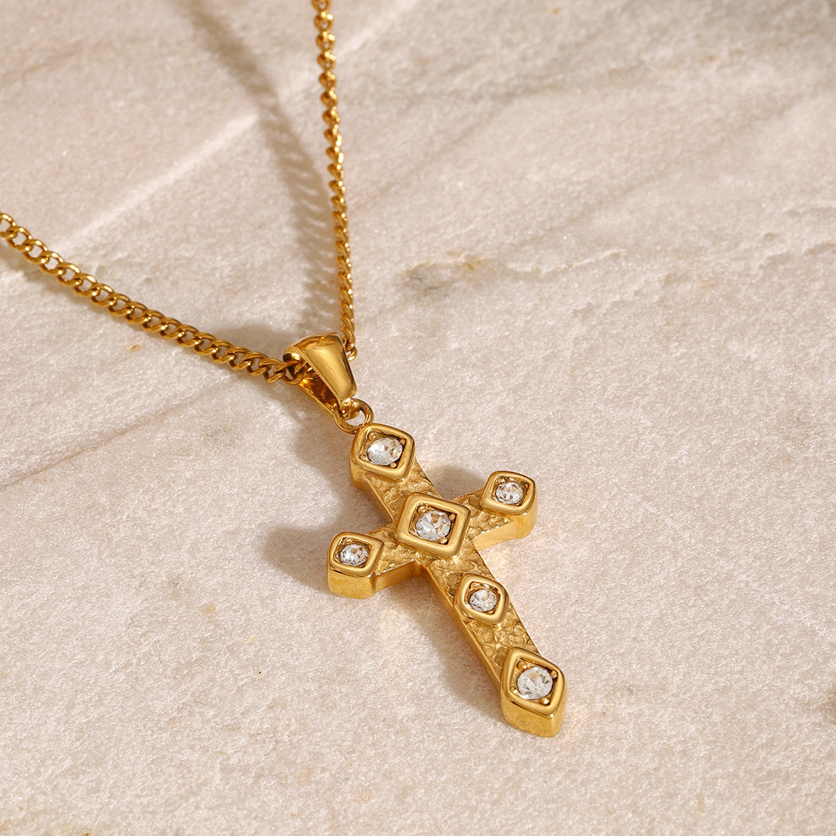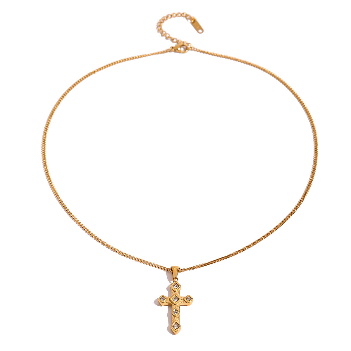 Jie Ding Stainless Steel Diamond Cross Necklace Niche Style Clavicle Chain Titanium Steel Necklace