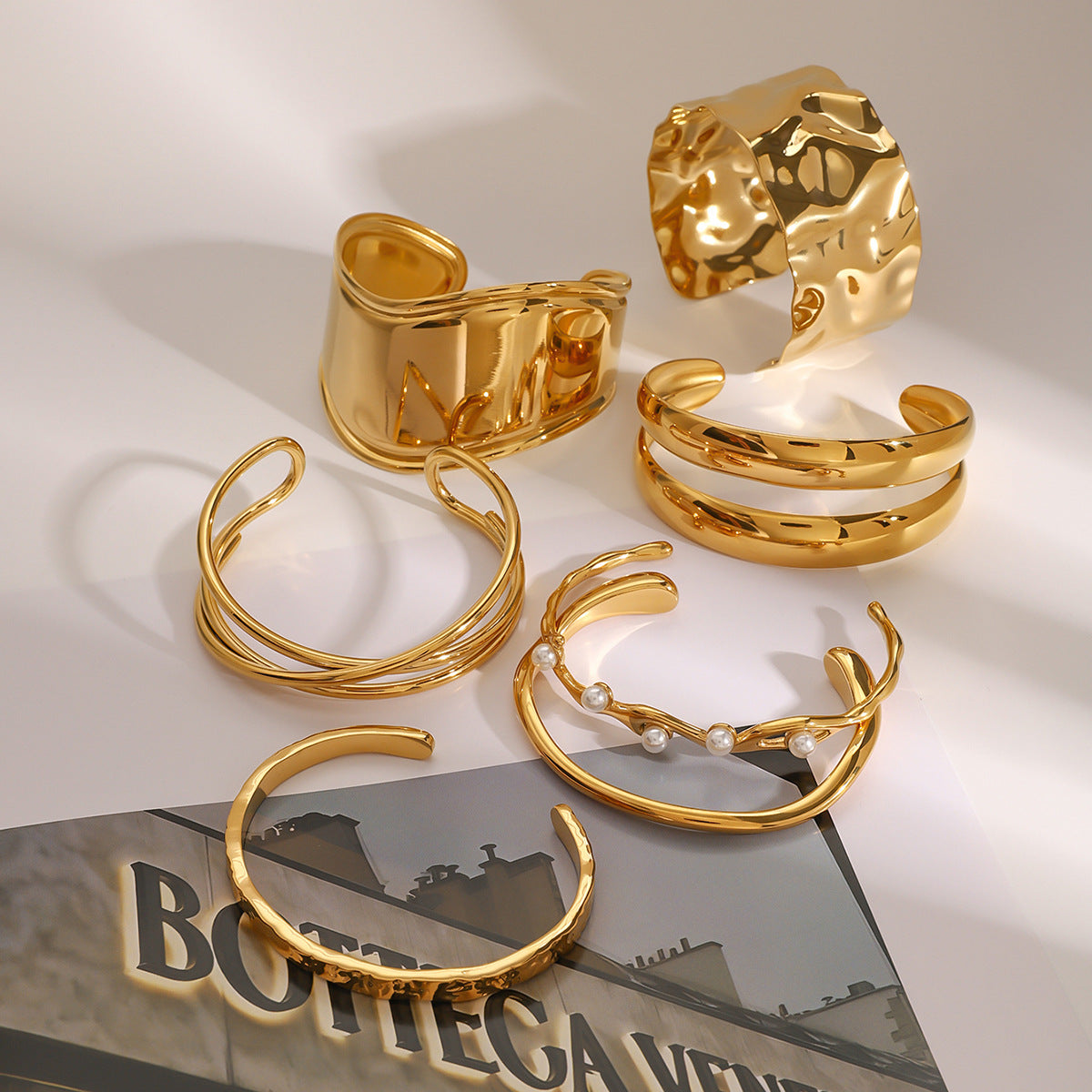 Jie Ding Stainless Steel Gold Pearl Bracelet Open Bracelet Titanium Steel Bracelet