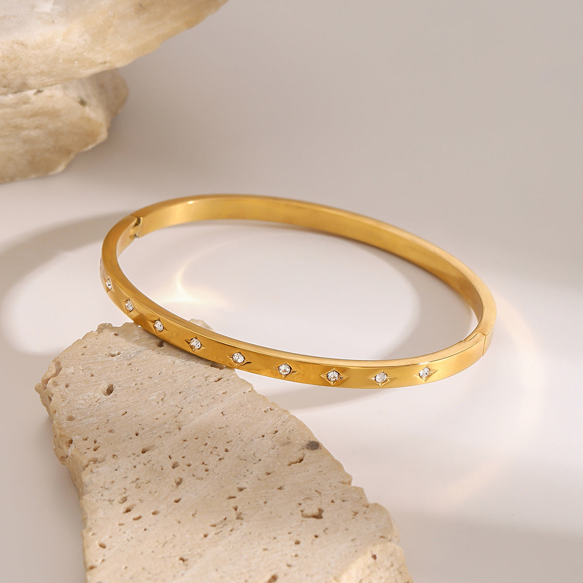 Jie Ding Stainless Steel Rhinestone Buckle Bracelet High Version 18K Gold-Plated Bracelet Titanium Steel Jewelry