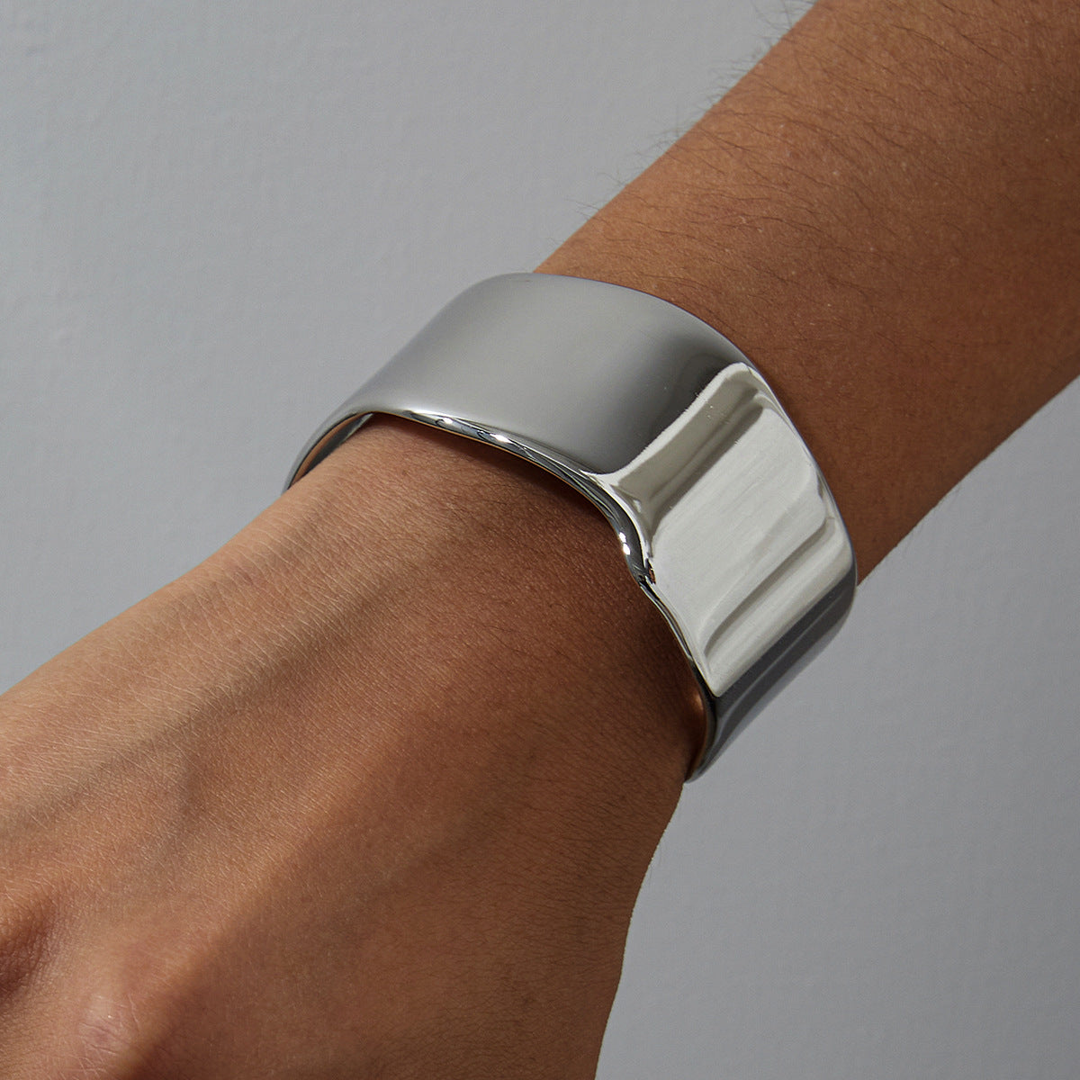 Jie Ding Stainless Steel Smooth Wide Bracelet Jewelry Steel Color Bracelet Titanium Steel