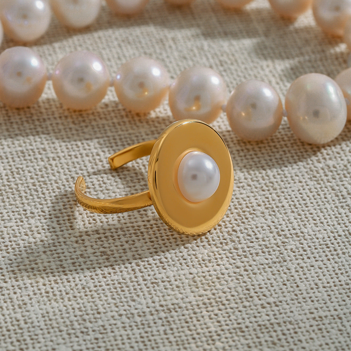 Jie Ding Titanium Steel Pearl Ring Female Niche Design Ring Stainless Steel Rings
