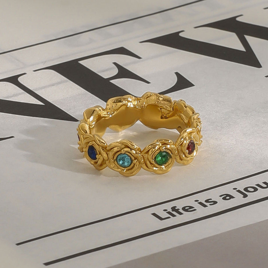 Jie Ding Zircon Rose Titanium Steel Ring Jewelry Ring Stainless Steel