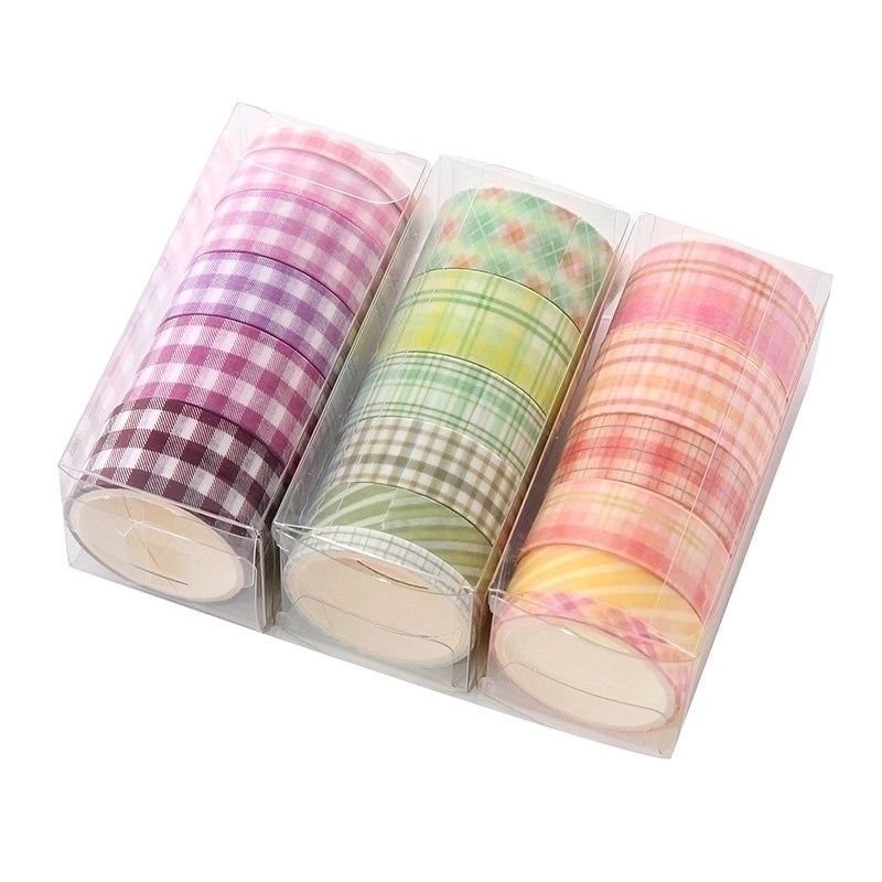 Korean Plaid And Paper Adhesive Tape Set Creative Stationery Diy Plaid Hand Account Handmade Stickers Exclusive For Cross-border