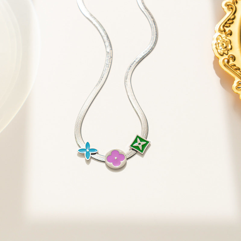 Korean Round Geometric Titanium Steel 18K Gold Plated Necklaces