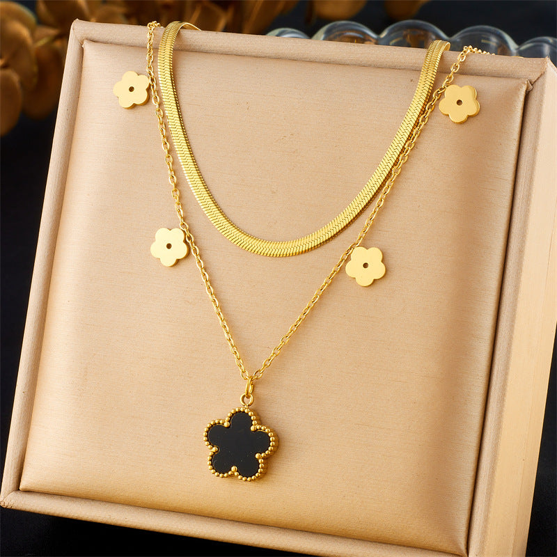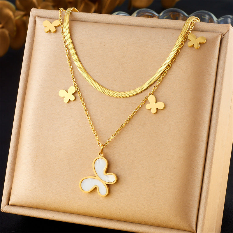 Korean Style Fashion Simple Stacking Double Layer Love Butterfly Stainless Steel Flower Accessories Chain Pendant Necklace