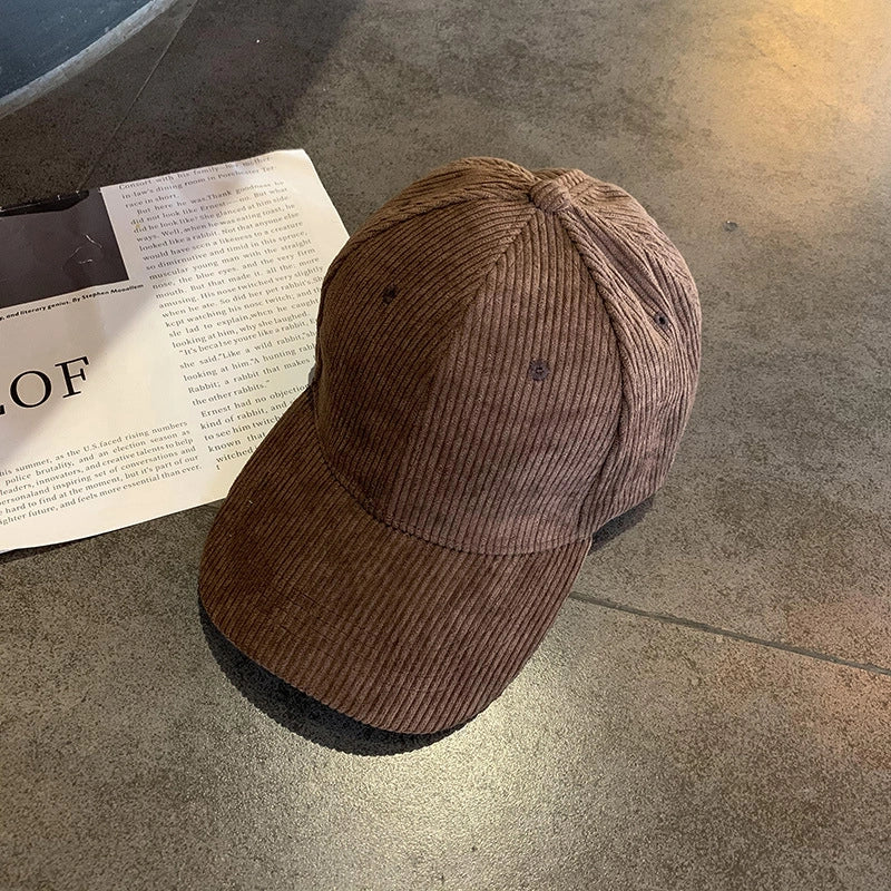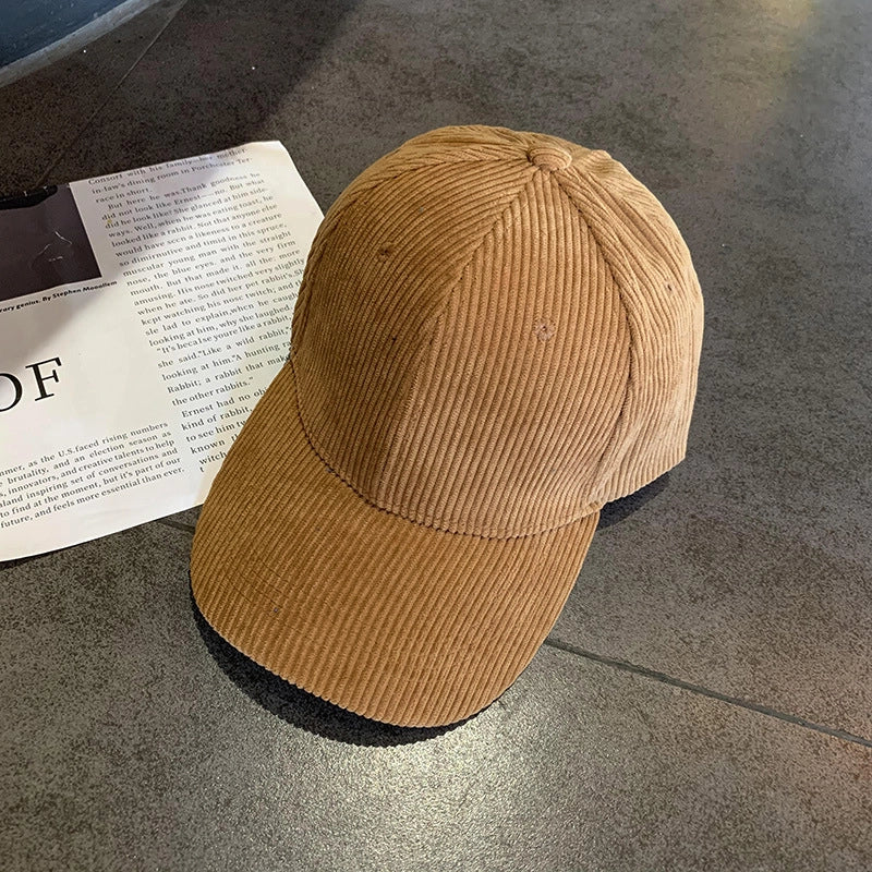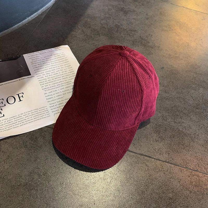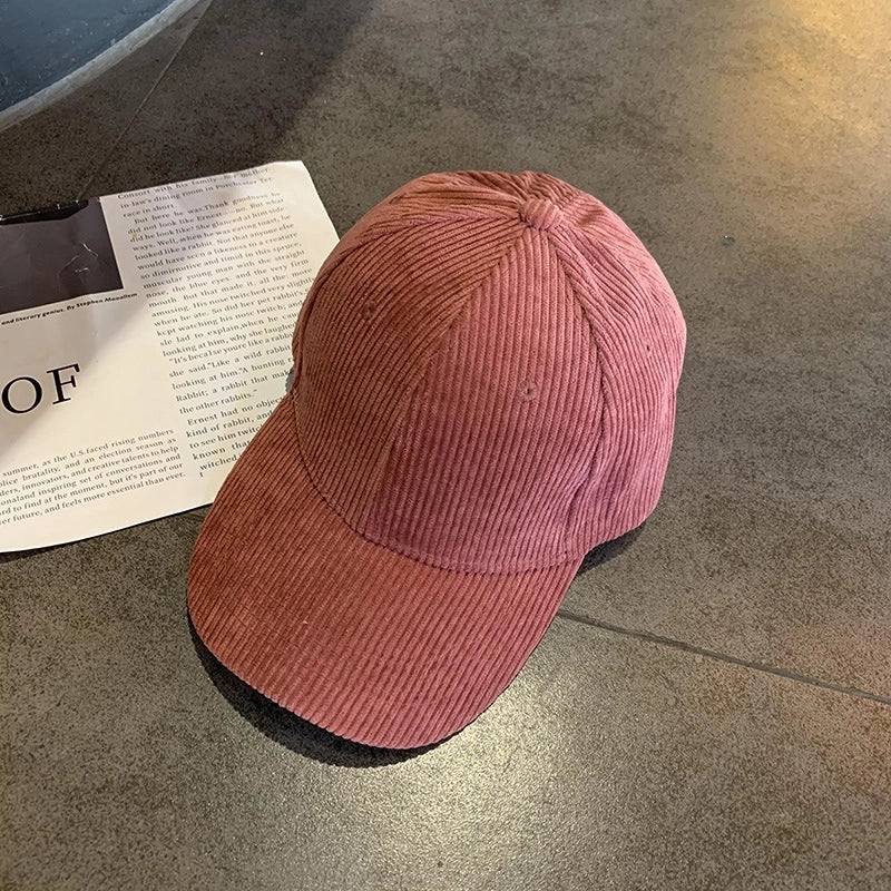Korean Versatile Solid Color Couple Baseball Hat Casual Corduroy Japanese Style Autumn And Winter Warm Cap For Men And Women Students