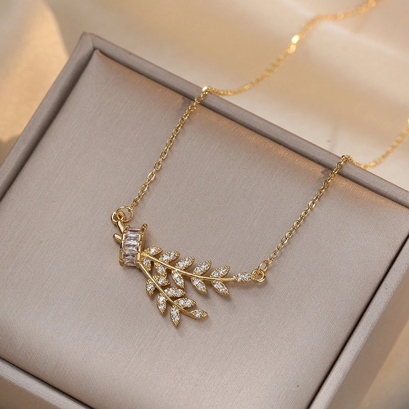 Be the first to review “Lady Leaf Titanium Steel Inlay Inlaid Gold Zircon Pendants Necklace” Cancel reply