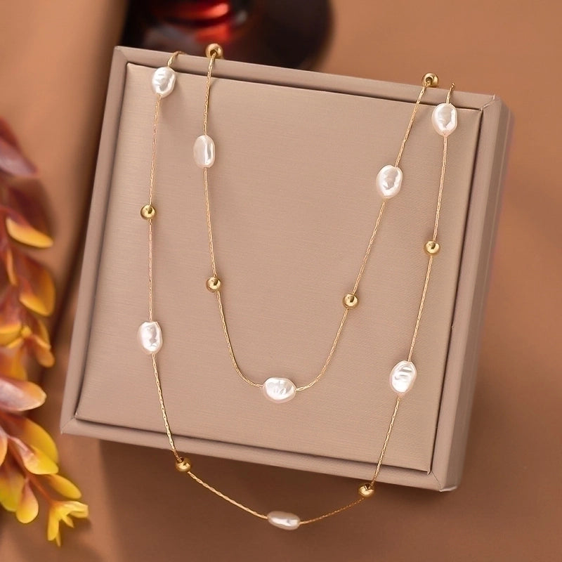 Lady Pearl 304 Stainless Steel 18K Gold Plated Beaded Plating Layered Necklaces