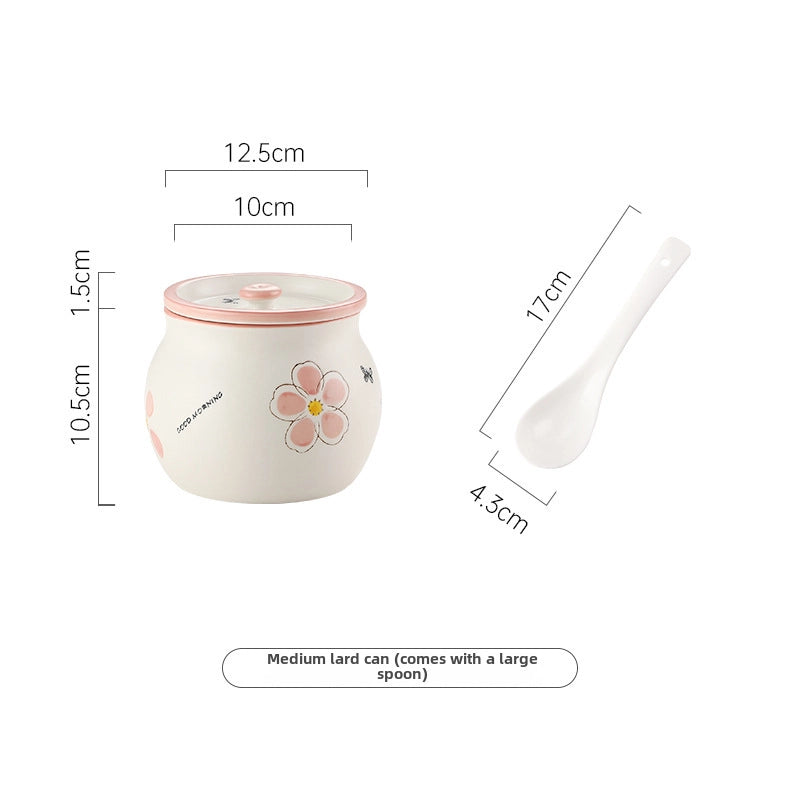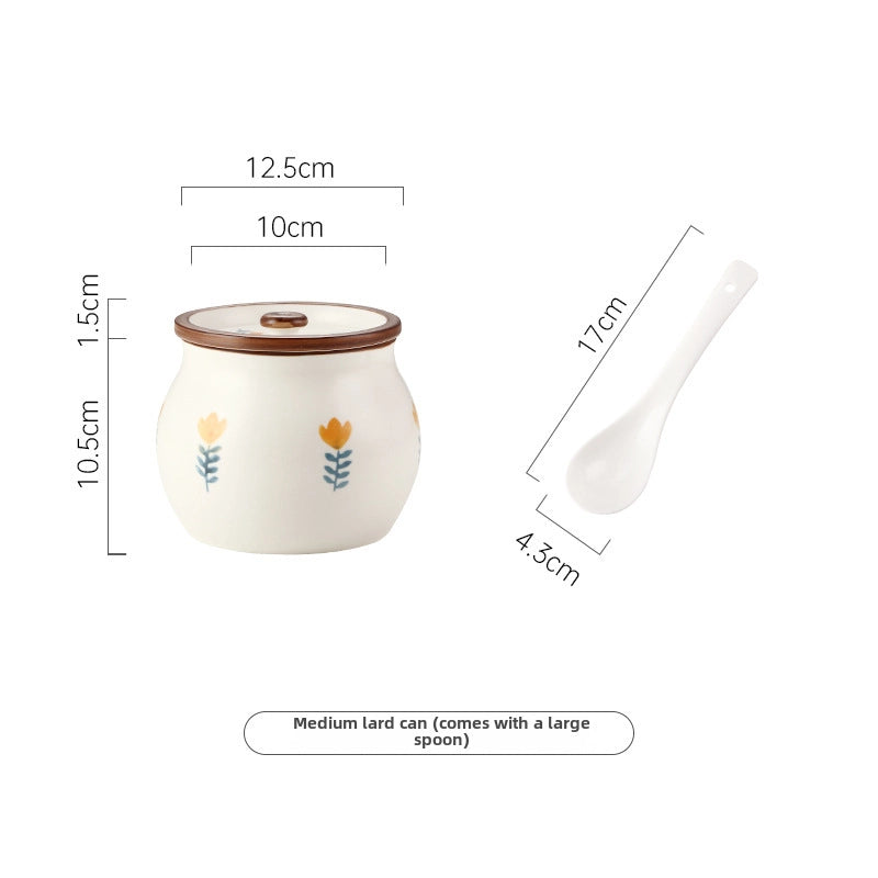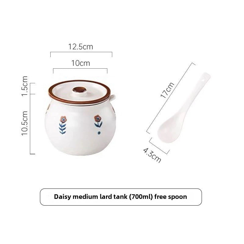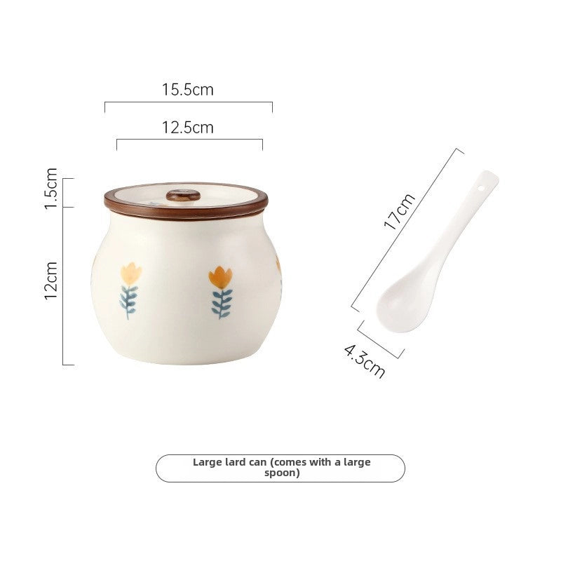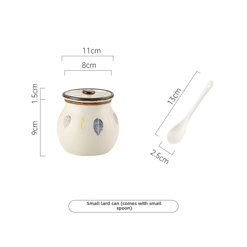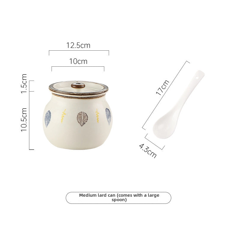 Lard Oil Jar With Lid And Spoon Household High Temperature Resistant Ceramic Japanese Style Storage Ceramic Seasoning Jar Cute Seasoning Jar