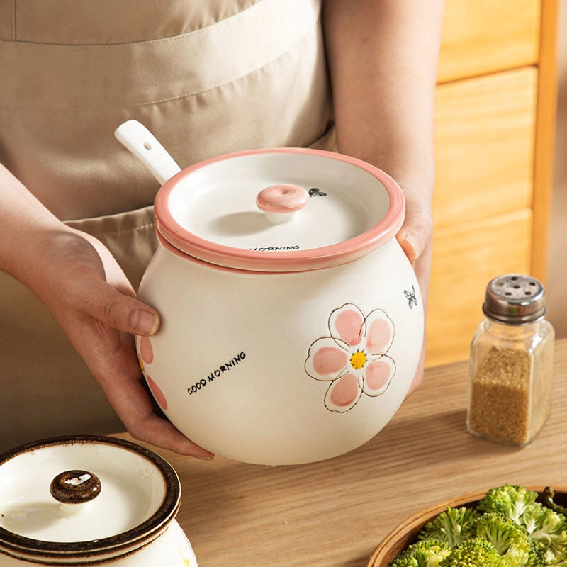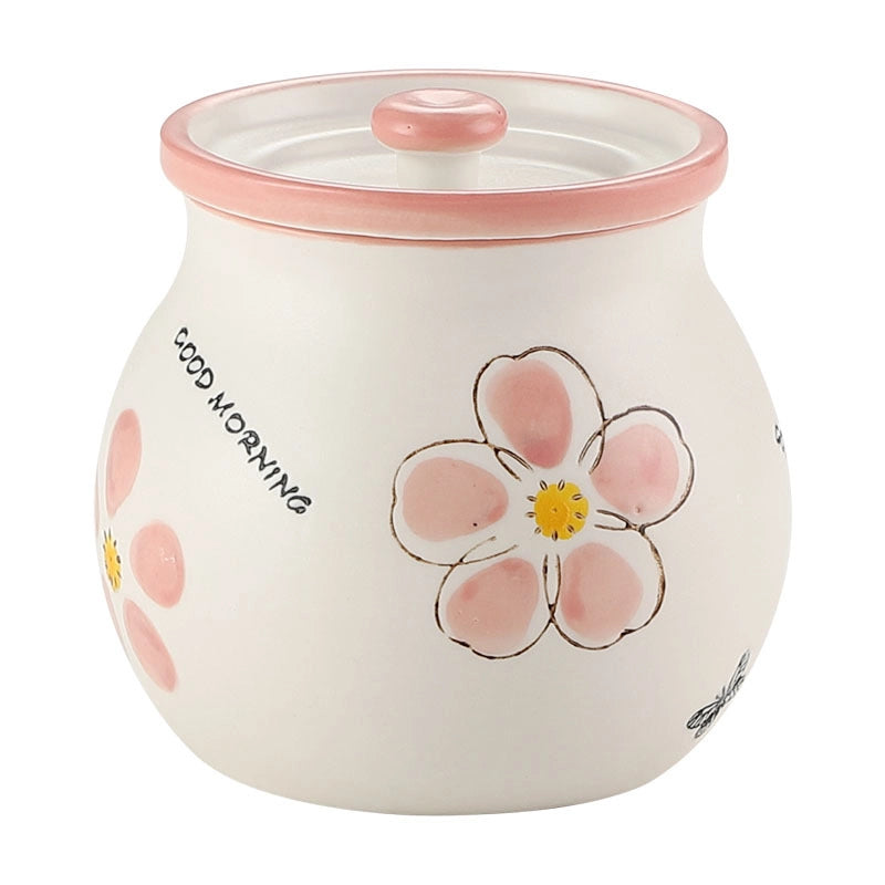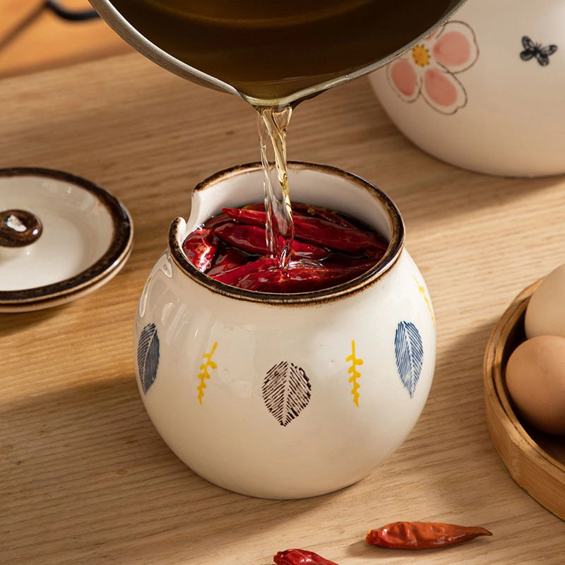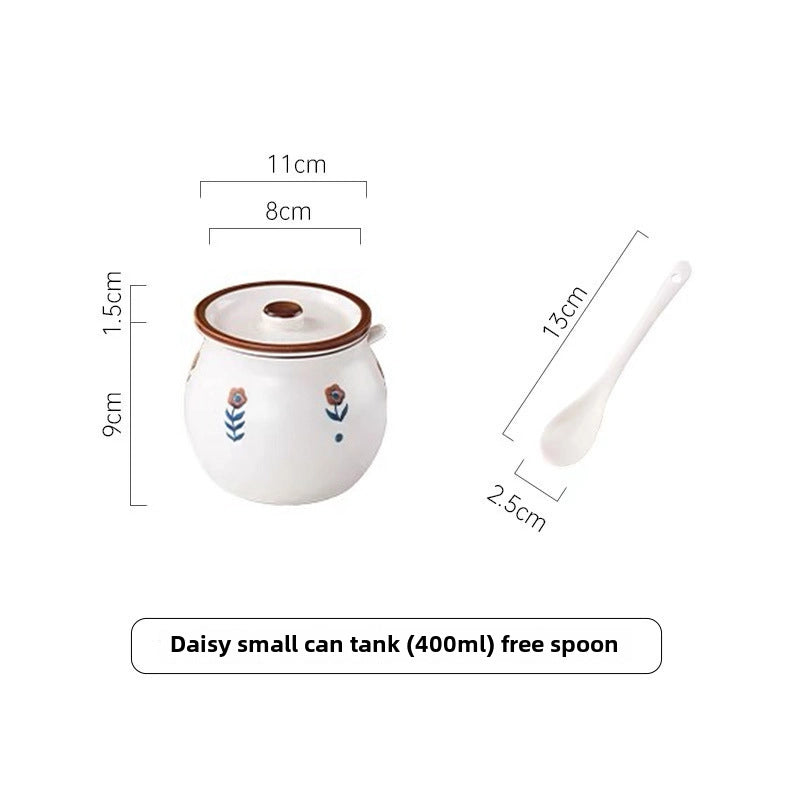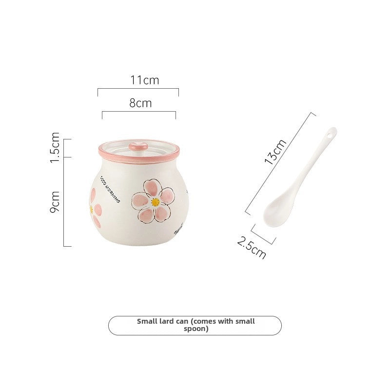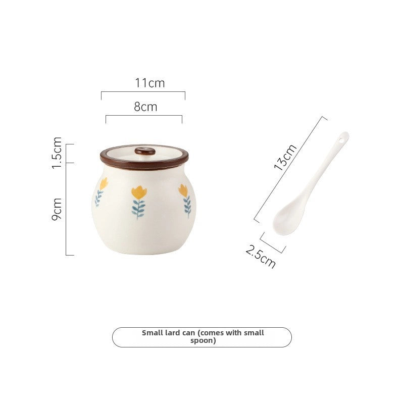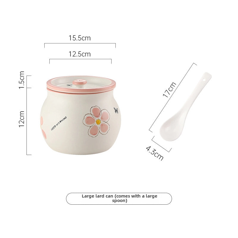 Lard Oil Jar With Lid And Spoon Household High Temperature Resistant Ceramic Japanese Style Storage Ceramic Seasoning Jar Cute Seasoning Jar
