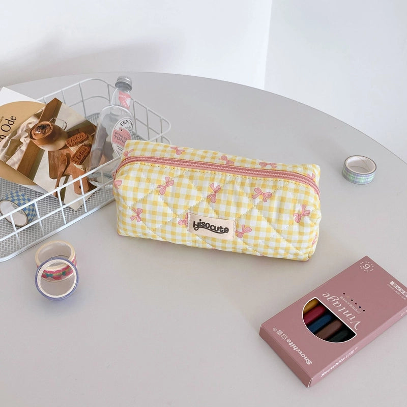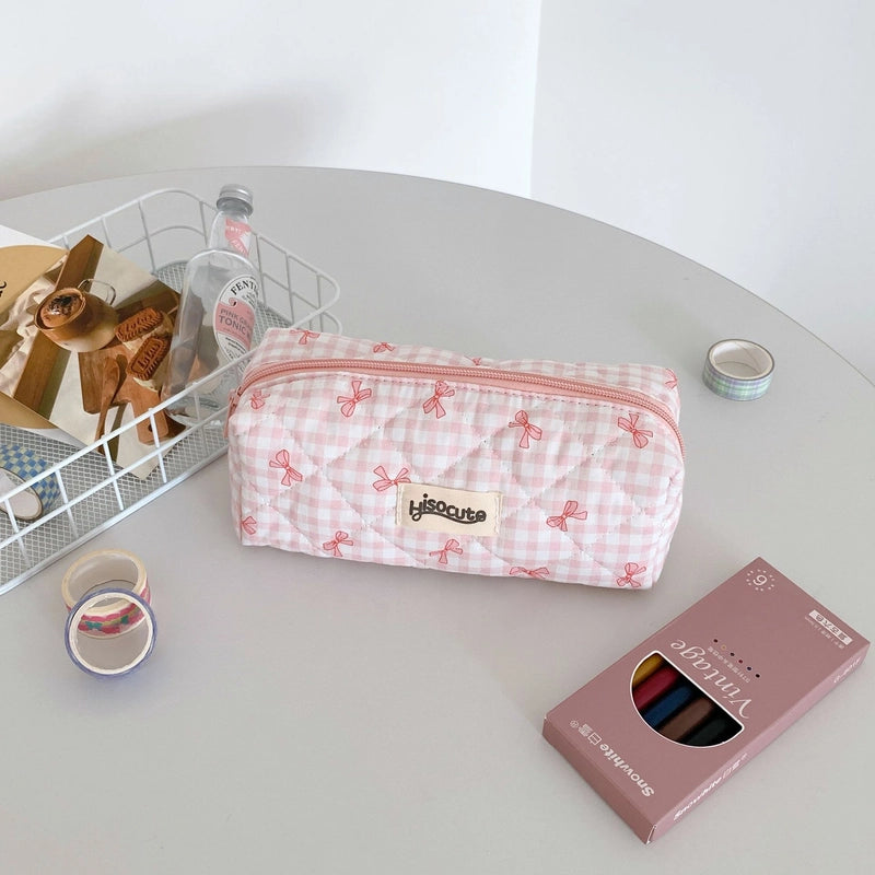 Lattice Bow Knot Cotton Learning Cute Pencil Case