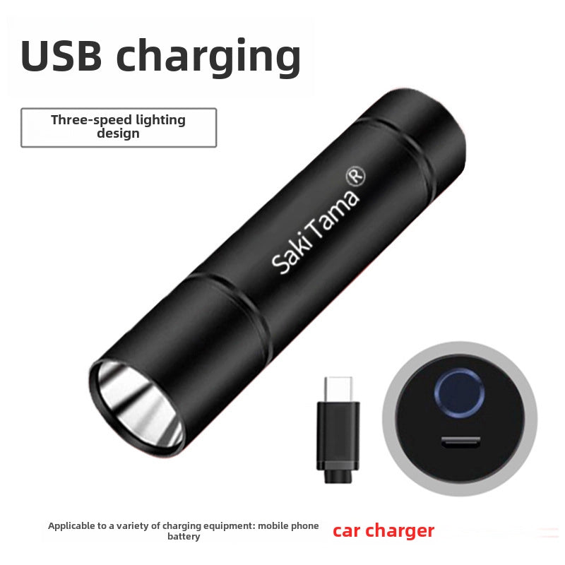 LED Strong Light Small Flashlight USB Rechargeable Multifunctional Mini Student Portable Lighting Work Lamp Gift