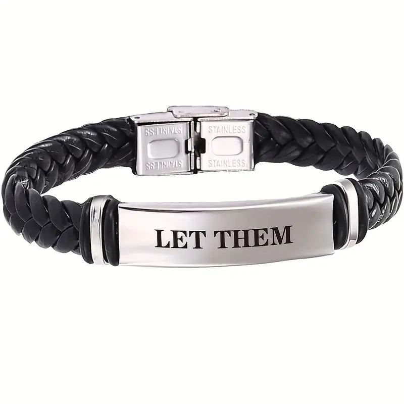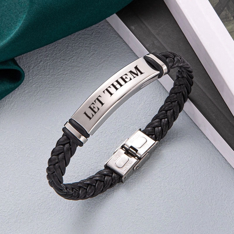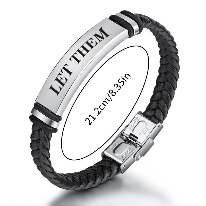 Let Them Twist Leather Bracelet Elegant Handsome Stainless Steel Laser Engraving Fashion Bracelet