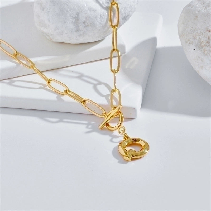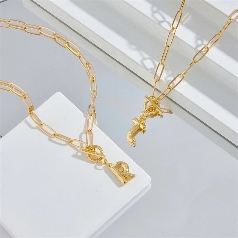Copper 14K Gold Plated Fashion Plating Letter Pendant Necklace