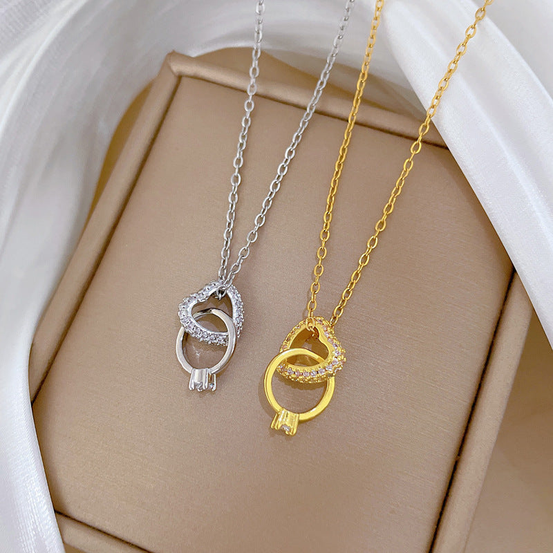 Love Ring Exquisite And Gorgeous Full Diamond Necklace Women’S Versatile Clavicle Chain Titanium Steel Chain