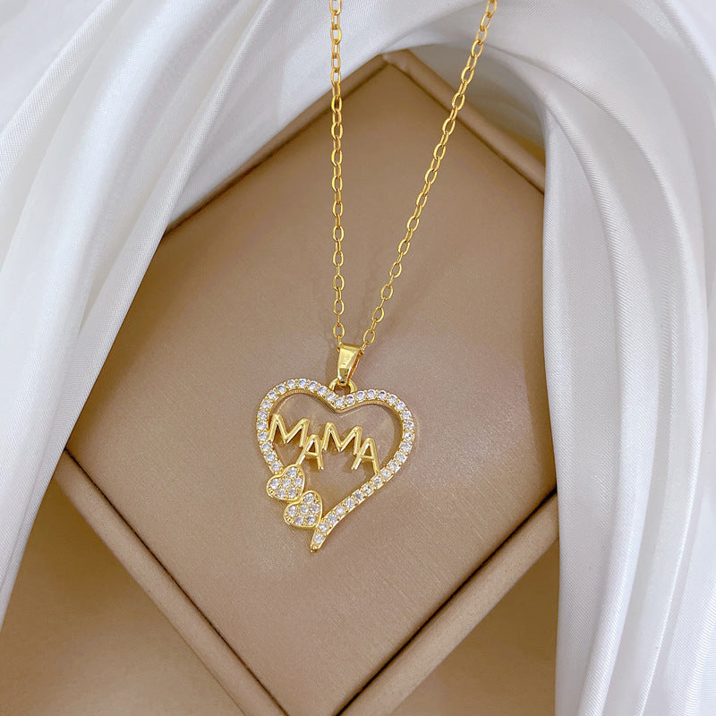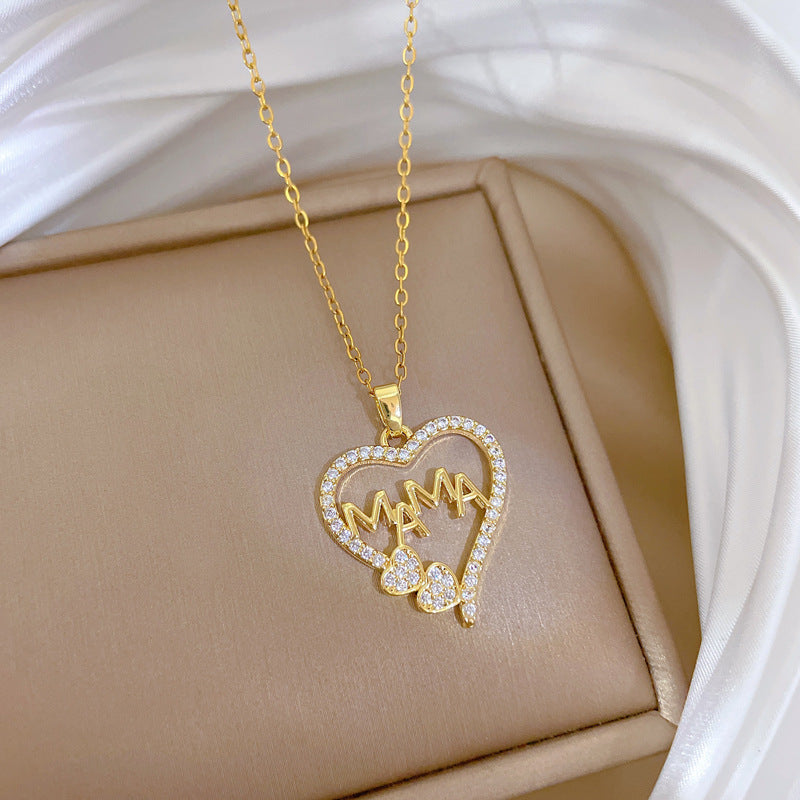 Loving Mother Zircon Gorgeous Full Diamond Necklace Female Versatile Clavicle Chain Titanium Steel Chain