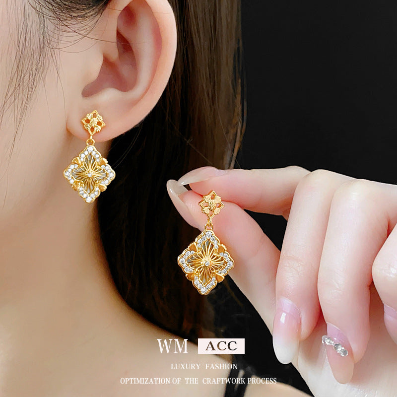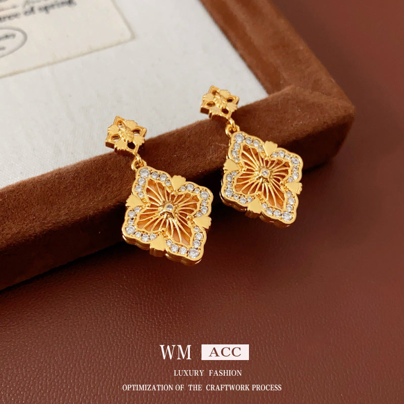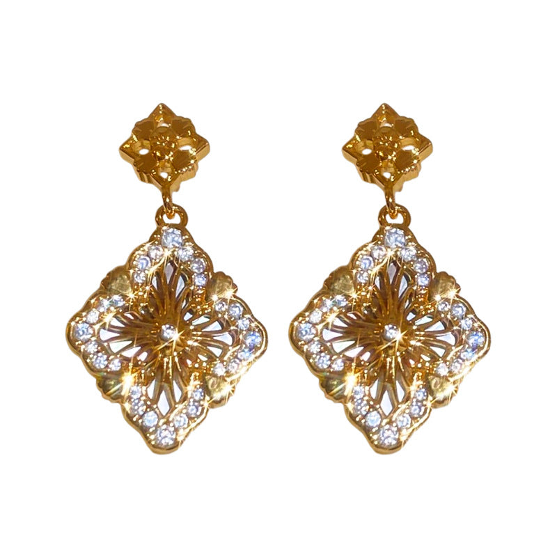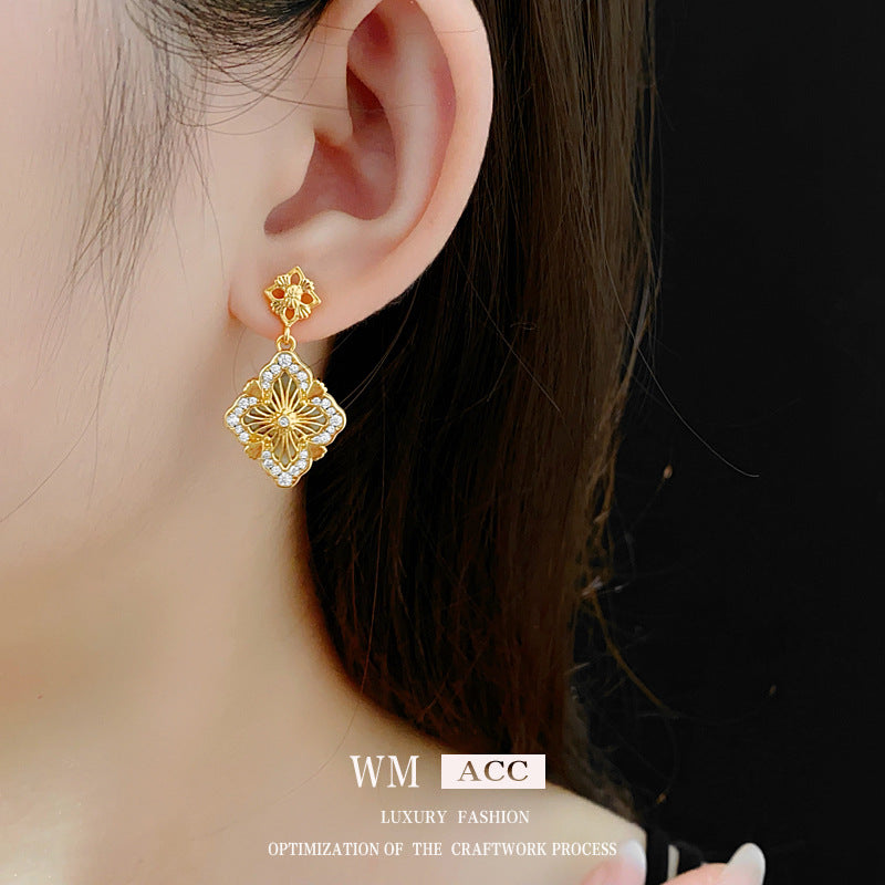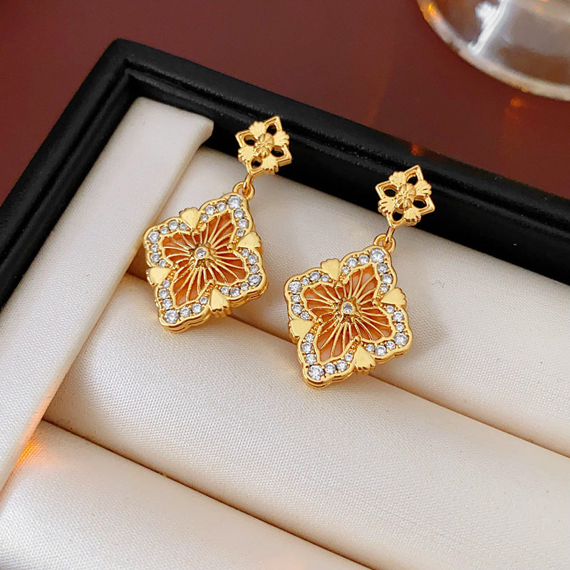 Luxurious Flower Flower Copper Zircon Inlay Earrings
