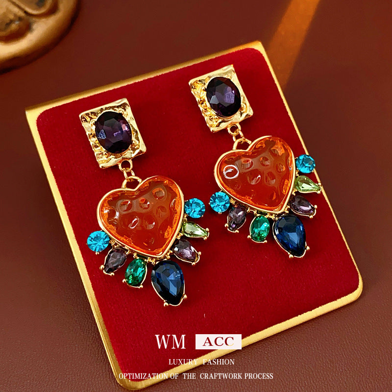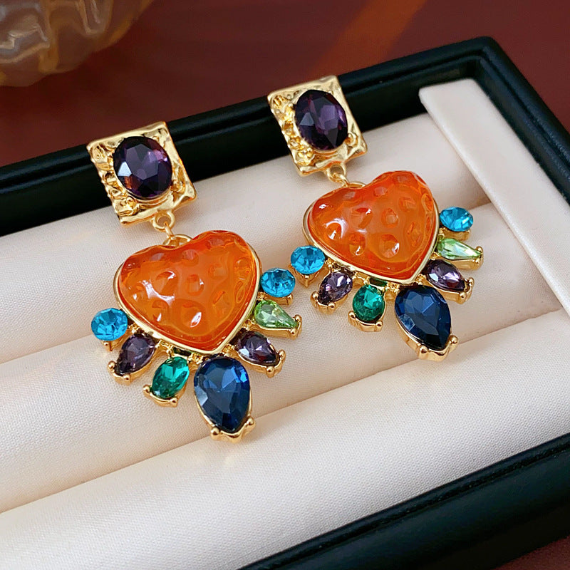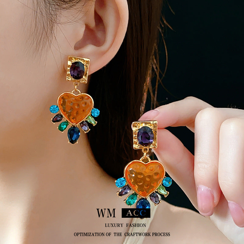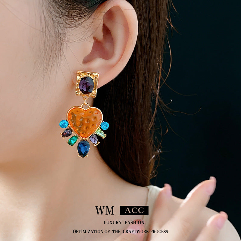 Luxurious Heart Geometric Heart Copper Diamond Inlay Earrings