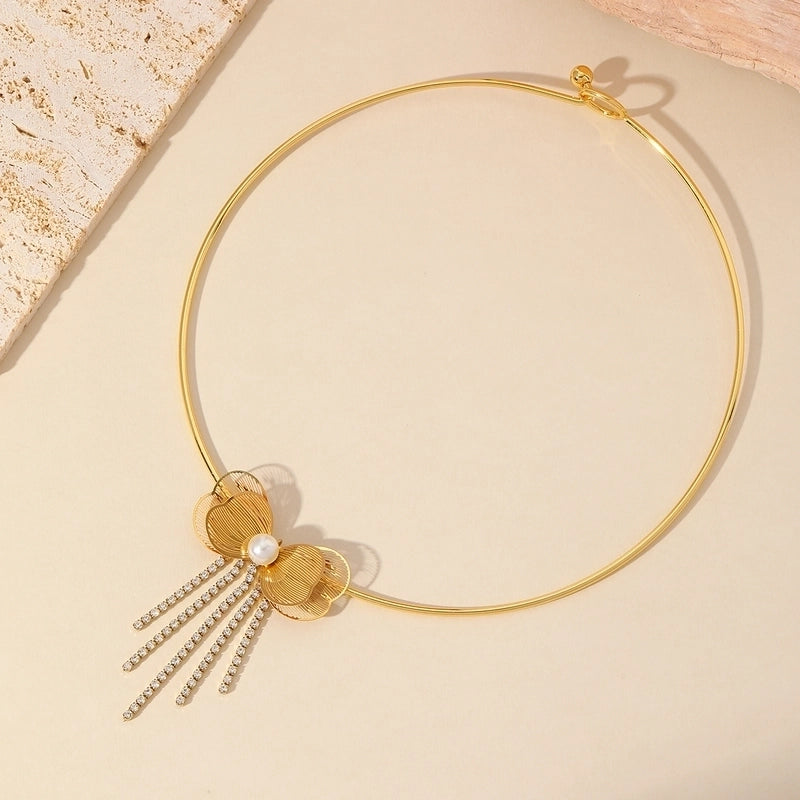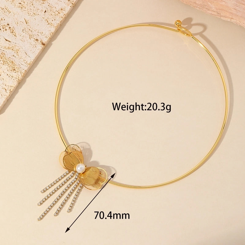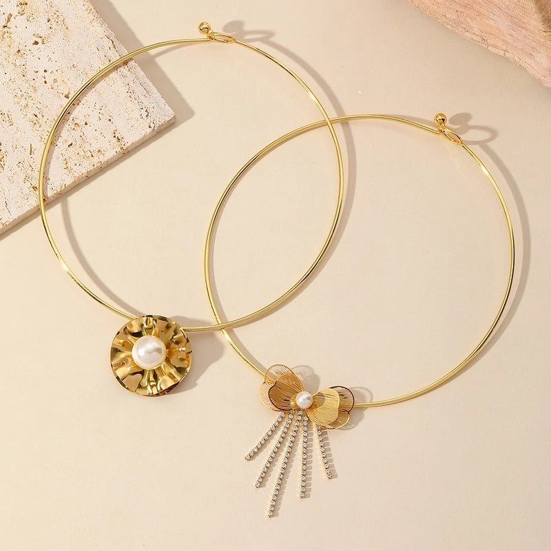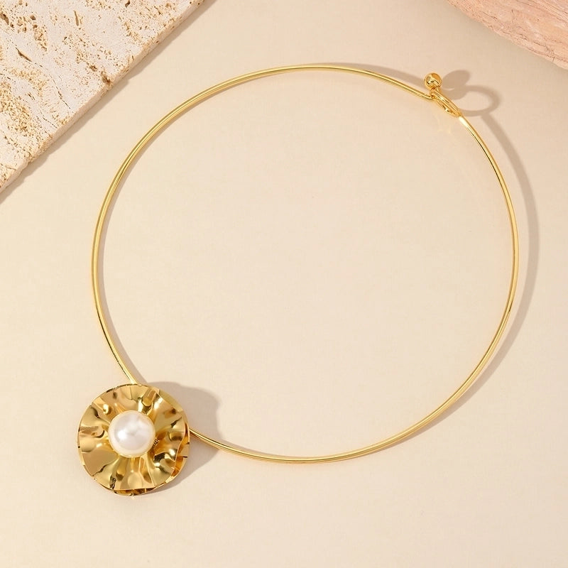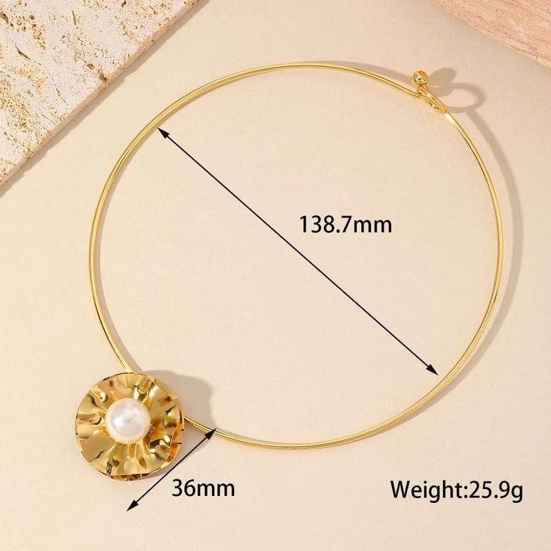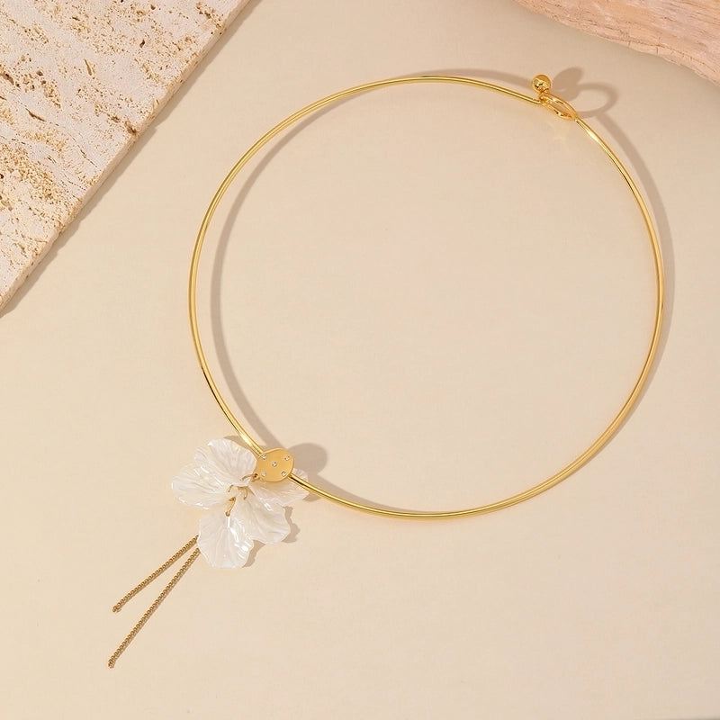 Luxurious Minimalist Flower 304 Stainless Steel Imitation Pearl Plating Inlay Choker