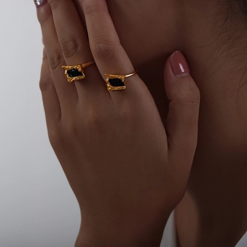 | Color | Black Glass Stone Gold Ring, Green Glass Stone Gold Ring |