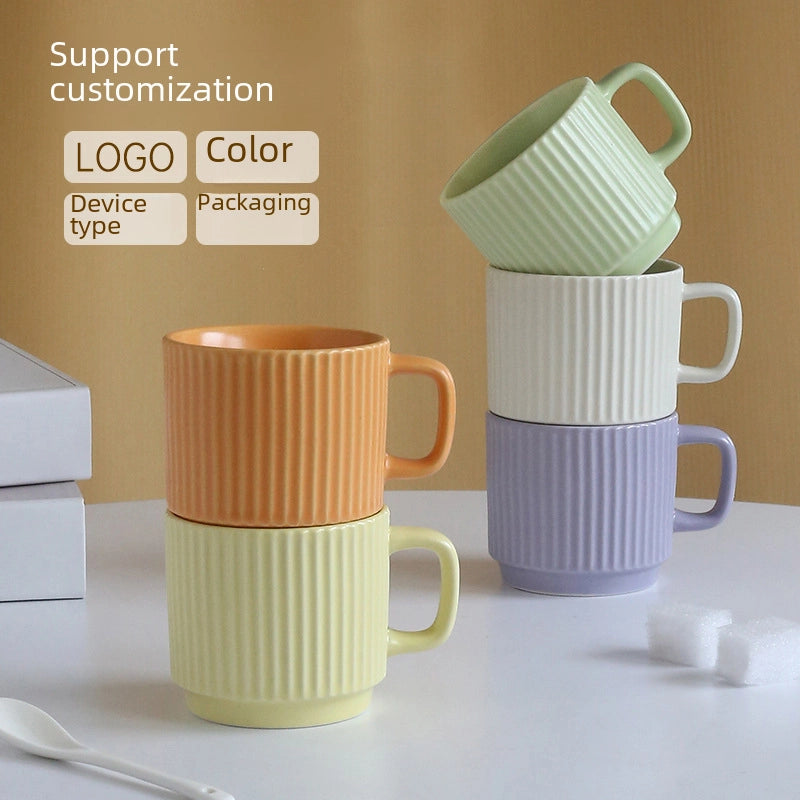 Macaron Simple Striped Ceramic Mug Accompanying Gift Coffee Mug Promotional Mug