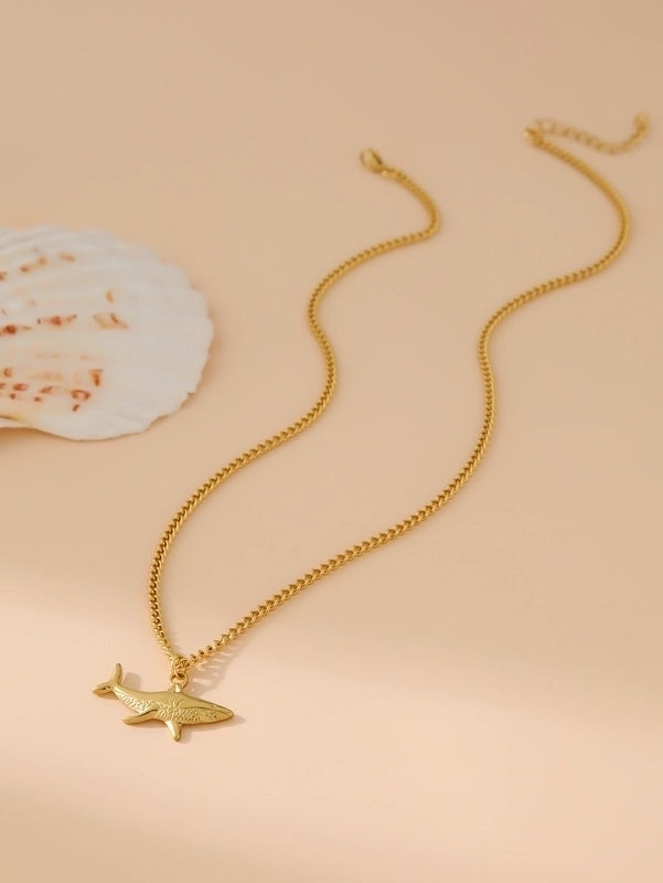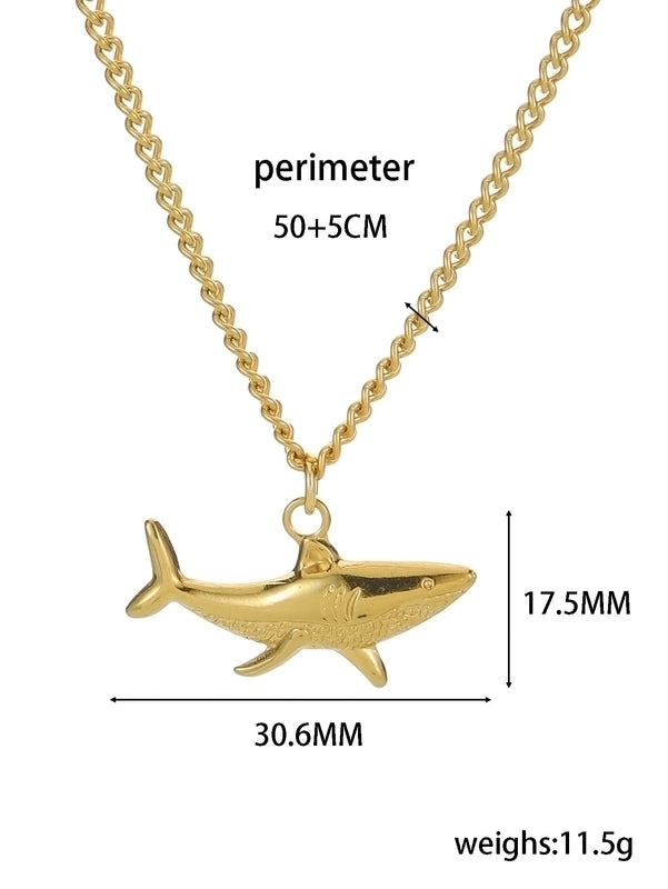 Marine Style Cool Style Shark 304 Stainless Steel 18K Gold Plated Pendant Necklace