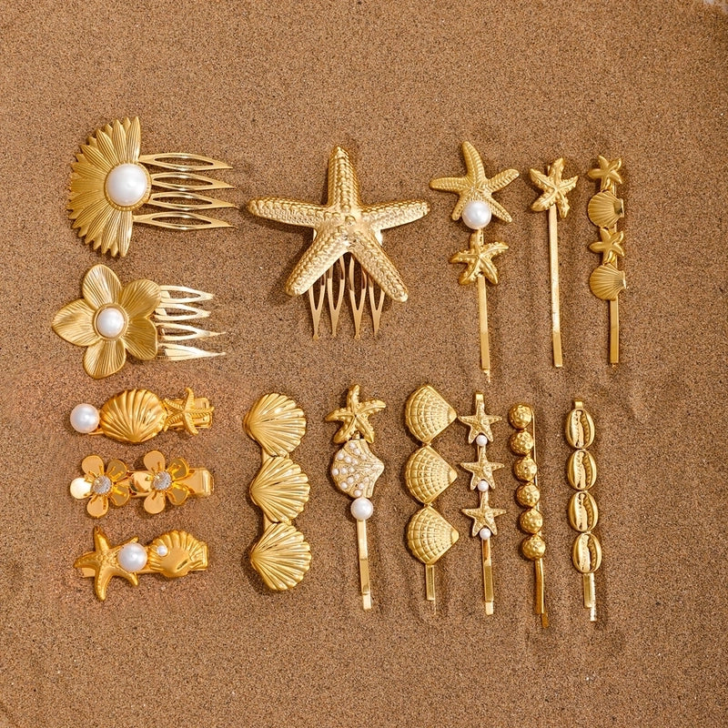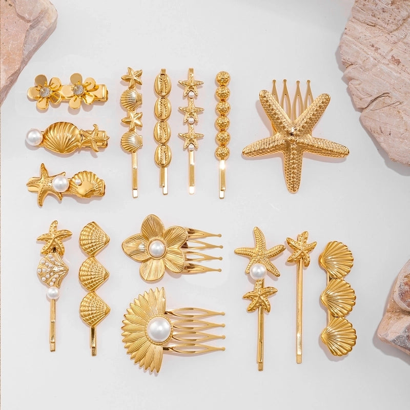 Be the first to review “Marine Style Minimalist Women’s Star Flower Shell Alloy Inlay Pearl Hair Clip” Cancel reply