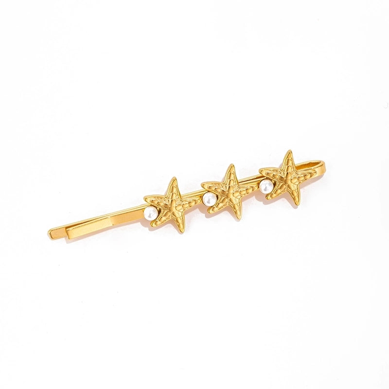 Marine Style Minimalist Women’s Star Flower Shell Alloy Inlay Pearl Hair Clip