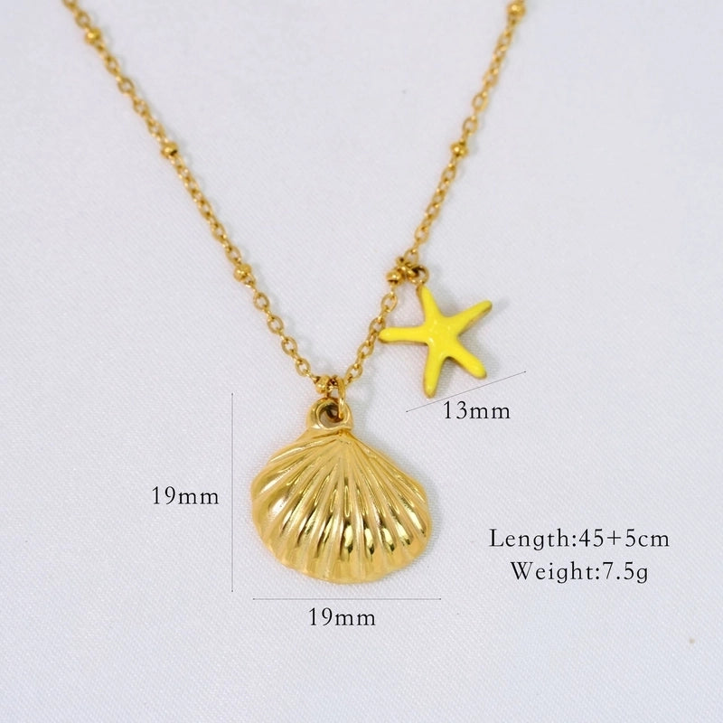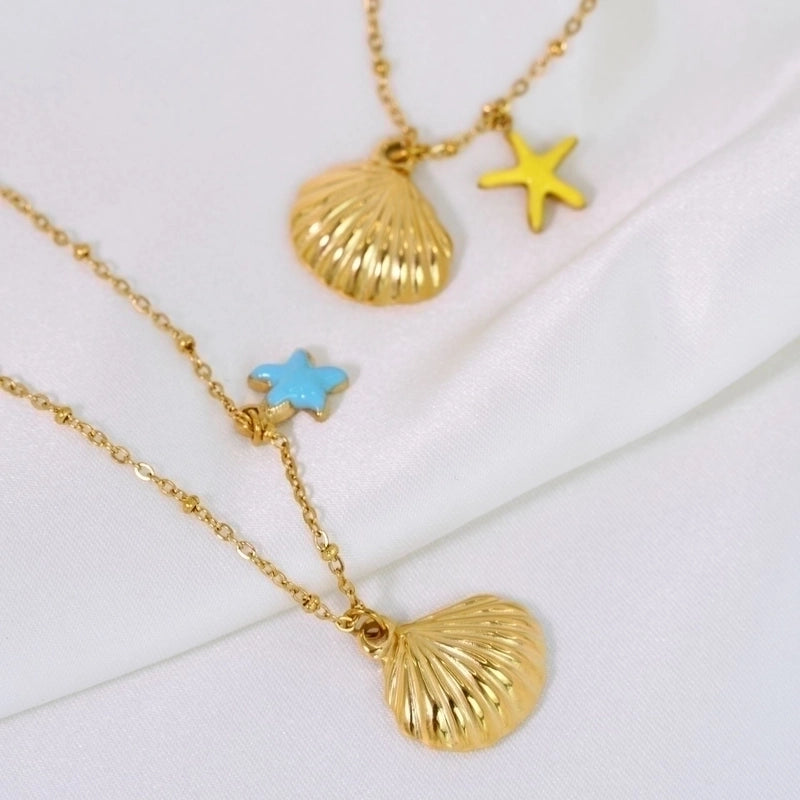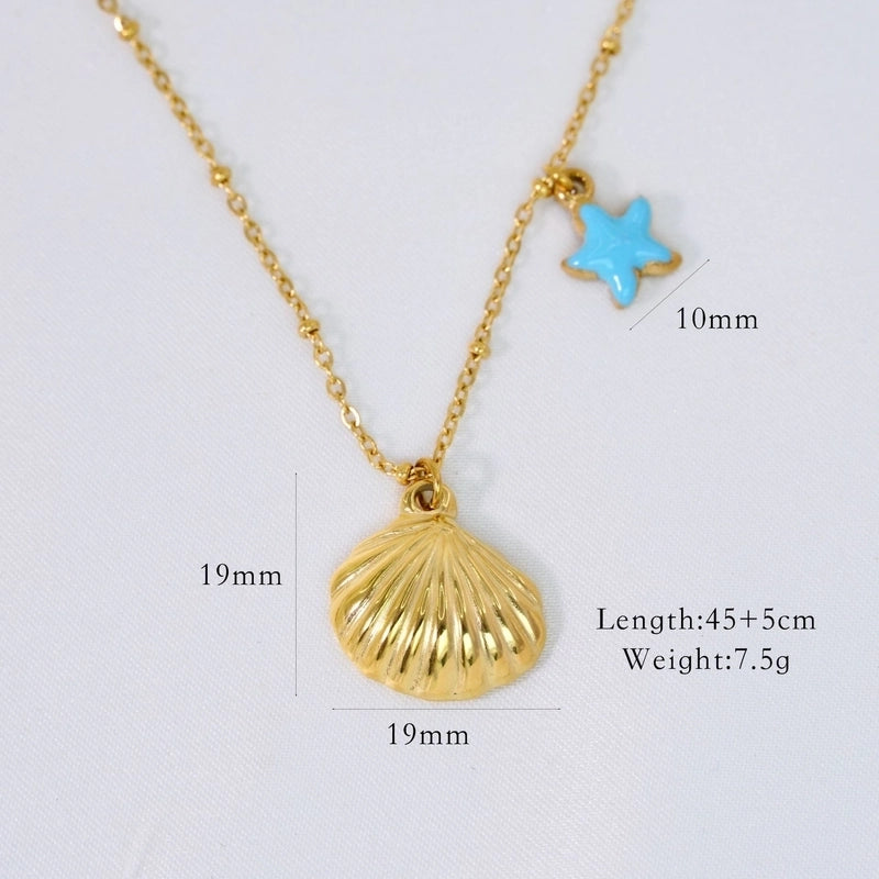 Marine Style Shell Titanium Steel 14K Gold Plated Pendant Necklace