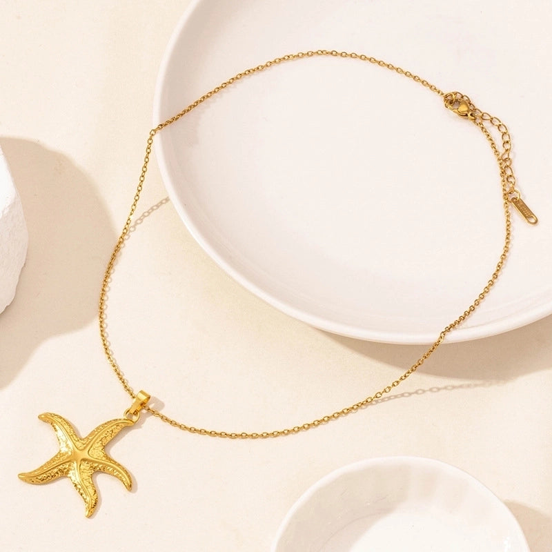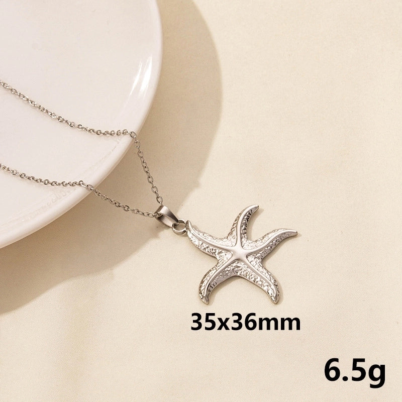 Marine Style Starfish Conch Fish Tail 304 Stainless Steel Pendant Necklace