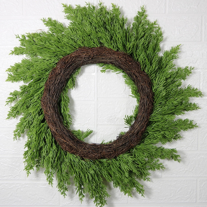 Meimei Christmas Green Pine Needle Garland 50CM20 Inch Christmas Garland Natural Rattan Ring Holiday Front Door Decoration Wall Decoration