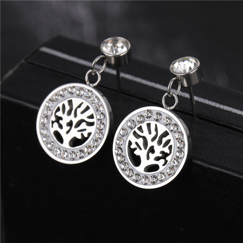 Men Tree Titanium Steel Polishing Earrings