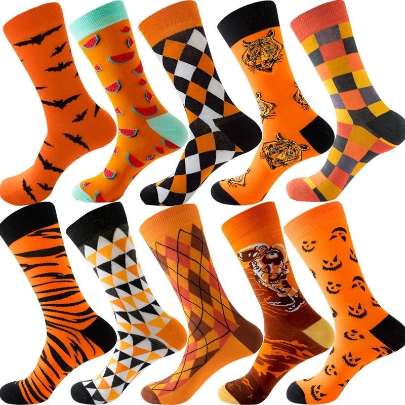 Men’s Modern Style Classic Style Color Block Stripe Fruit Cotton Crew Socks A Set Of 10 Pairs