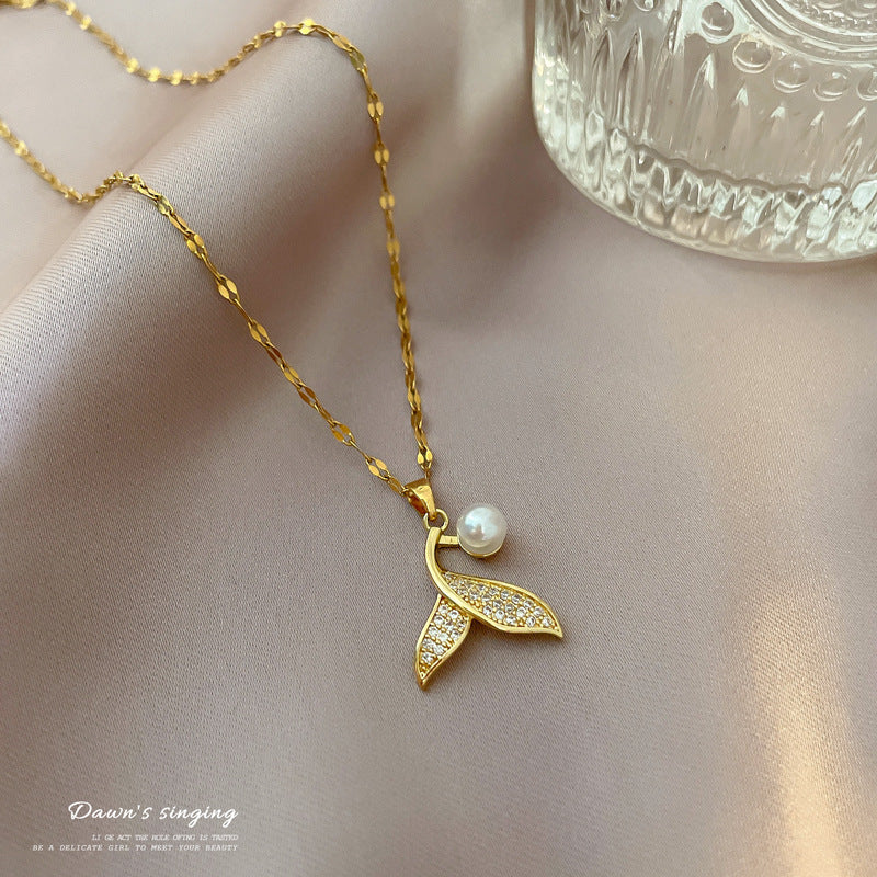 Mermaid Pearl Micro-Diamond Necklace For Women With Exquisite Style Ins Clavicle Chain