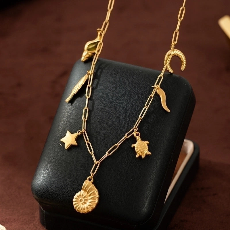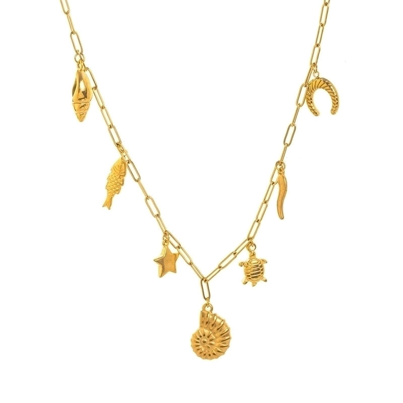 | Color | Necklace Set, Small Conch Individual Pendant, Fish Individual Pendant, Flat Conch Individual Pendant, Pepper Individual Pendant, Half Moon Separate Pendant |