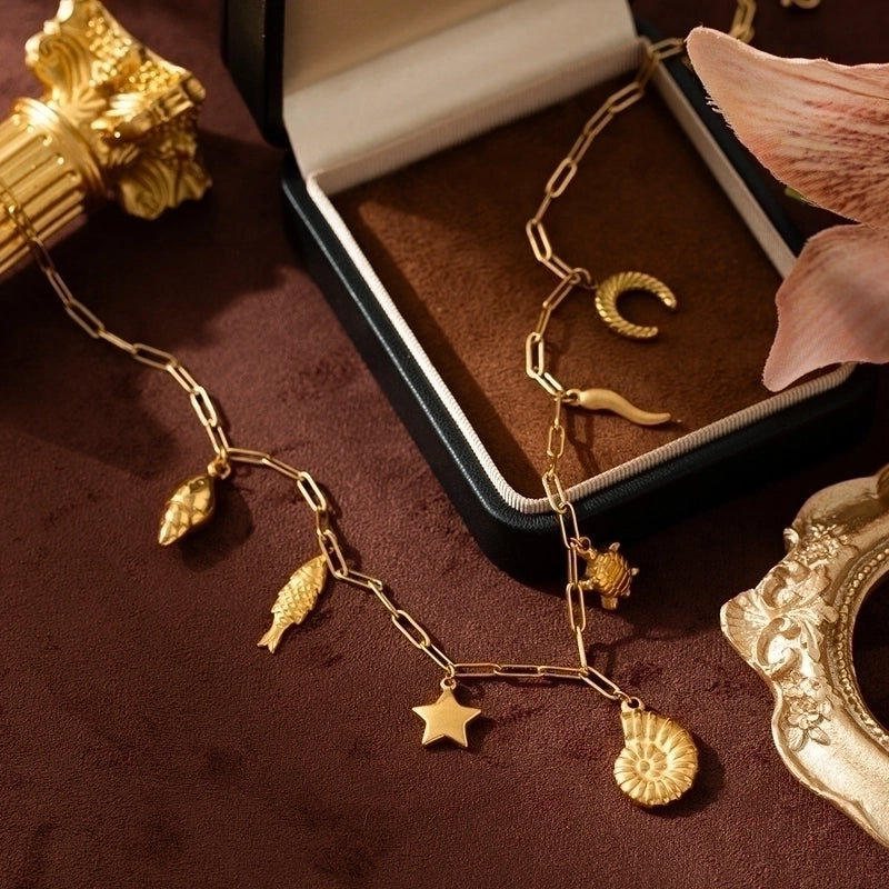 Be the first to review “Minimalist Animal Moon Fish 201 Stainless Steel 304 Stainless Steel 18K Gold Plated Multi Charms Necklace Necklace Pendant” Cancel reply