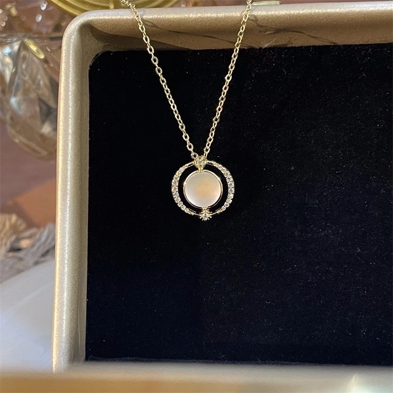 Minimalist Artistic Star Heart Shape Wings Steel Copper Inlay Opal Shell Zircon Pendant Necklace