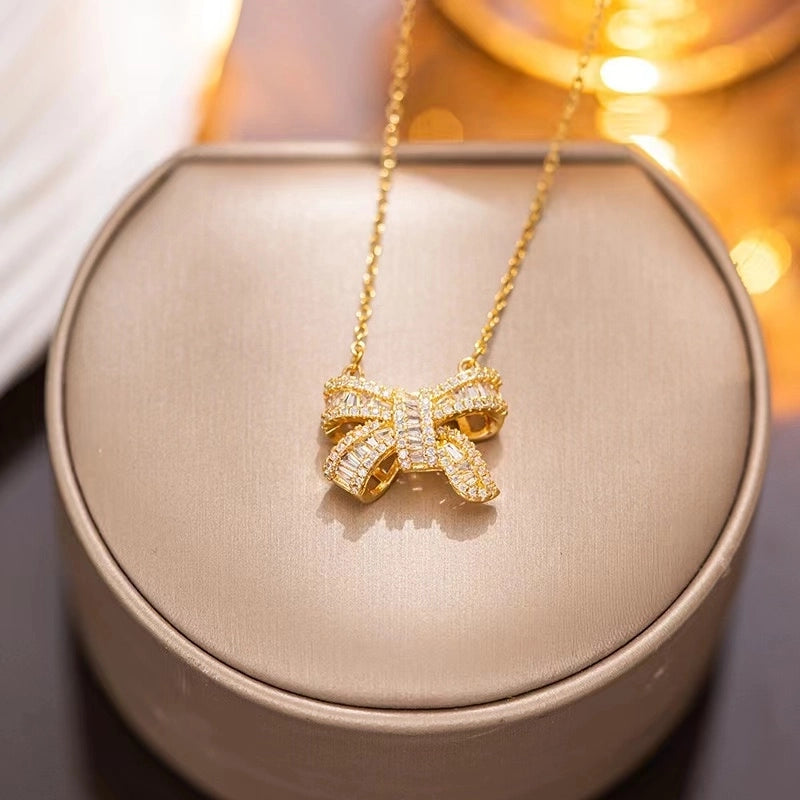 | Color | 551 Crystal Zirconium Bow Necklace Gold, 551 Crystal Zirconium Bow Necklace Silver |