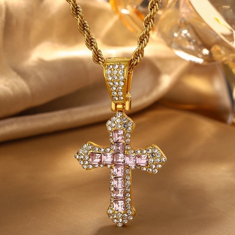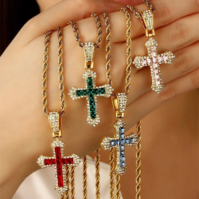 Minimalist Classic Style Cross 18K Gold Plated Artificial Rhinestones 304 Stainless Steel Zinc Alloy Rope Chain Pendant Necklaces