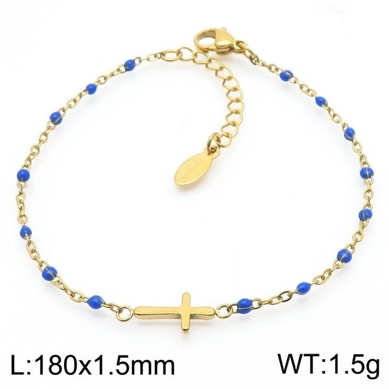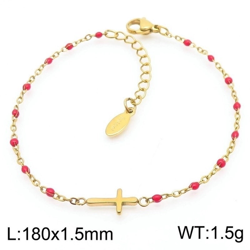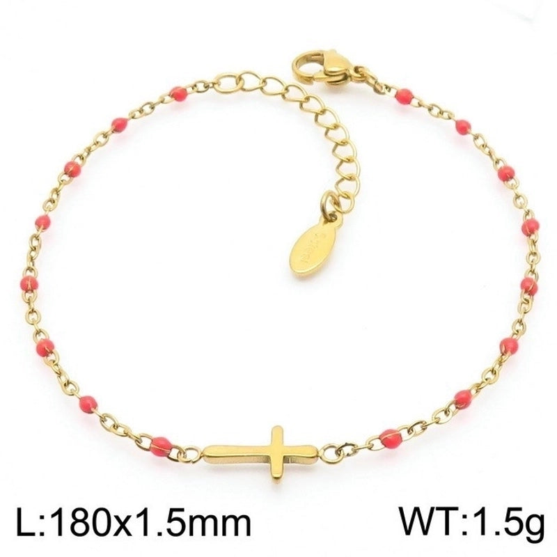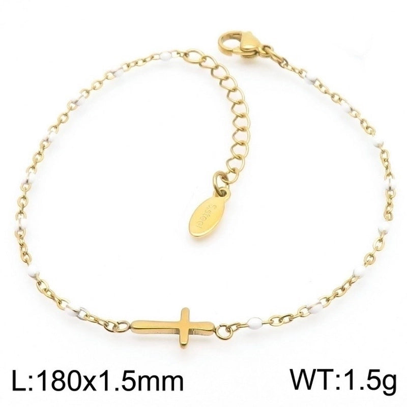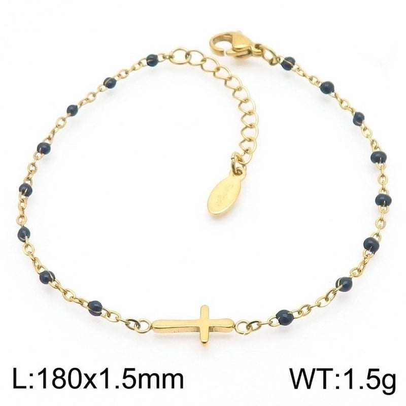 Minimalist Classic Style Cross Titanium Steel 18K Gold Plated Bracelets In Bulk