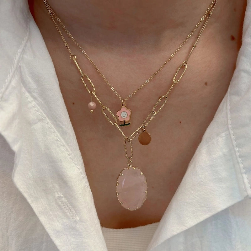 | Color | Powder Crystal Pendant Necklace, Dripping Oil Smile Necklace, Natural Stone Beads |