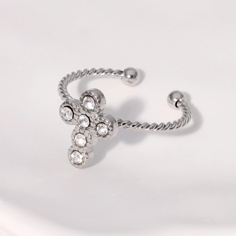 Minimalist Classic Style IG Style Cross 304 Stainless Steel Artificial Diamond 18K Gold Plated Inlay Stainless Steel Rings