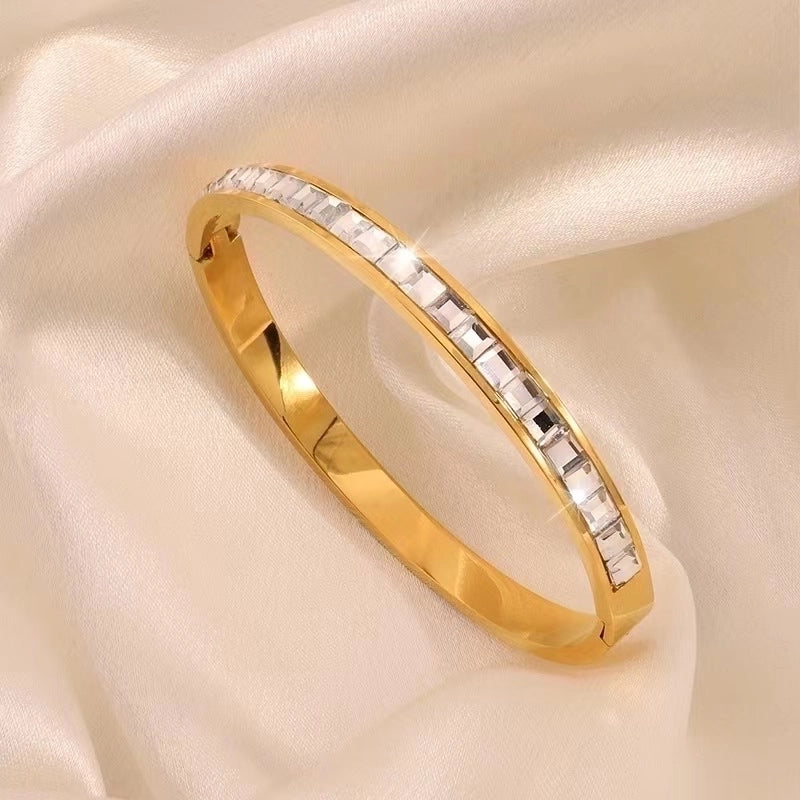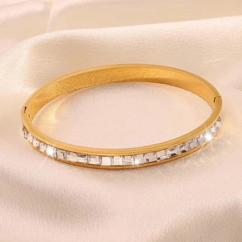 Minimalist Classic Style Solid Color 304 Stainless Steel 18K Gold Plated Zircon Bangle In Bulk