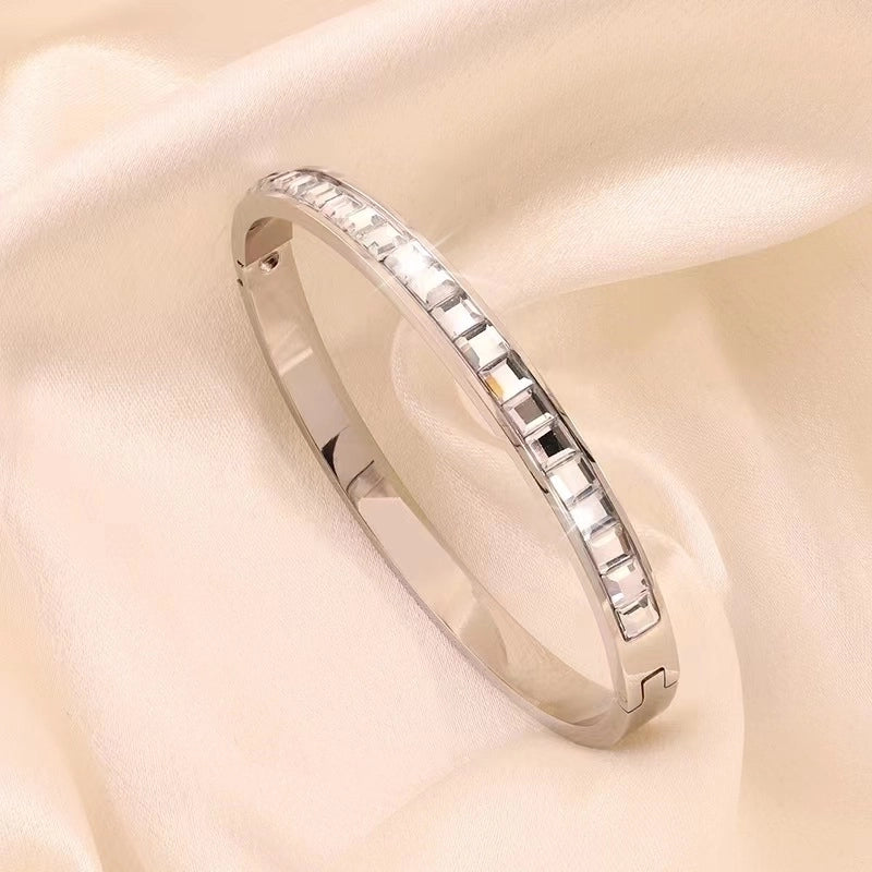 Be the first to review “Minimalist Classic Style Solid Color 304 Stainless Steel 18K Gold Plated Zircon Bangle In Bulk” Cancel reply