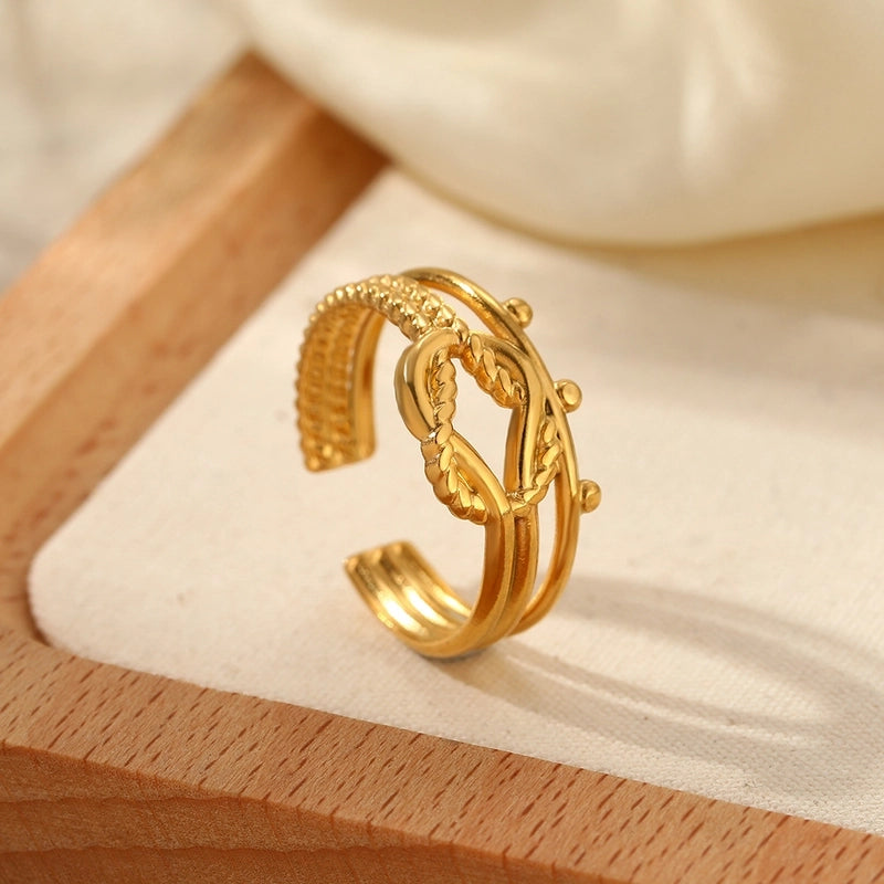 304 Stainless Steel 18K Gold Plated Elegant Retro Plating Geometric Leaf Heart Shape Open Rings