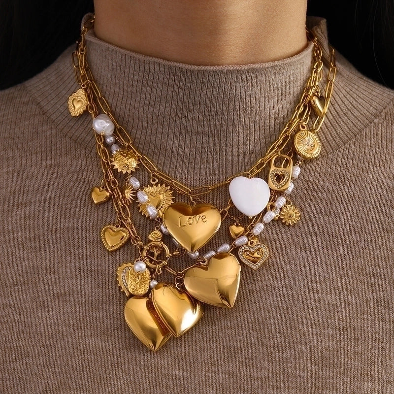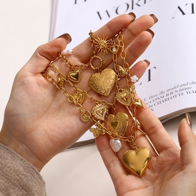 Be the first to review “Minimalist Classic Style Sun Heart Shape Butterfly 304 Stainless Steel Zircon 18K Gold Plated Pearl Inlay Multi Charms Necklace” Cancel reply