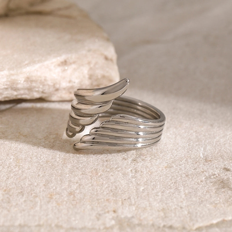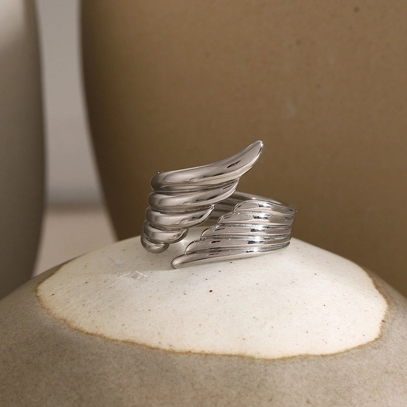 Minimalist Classic Style Wings 316 Stainless Steel 18K Gold Plated Plating Rings