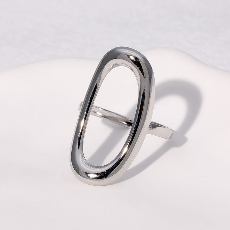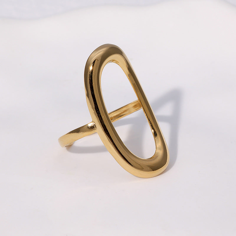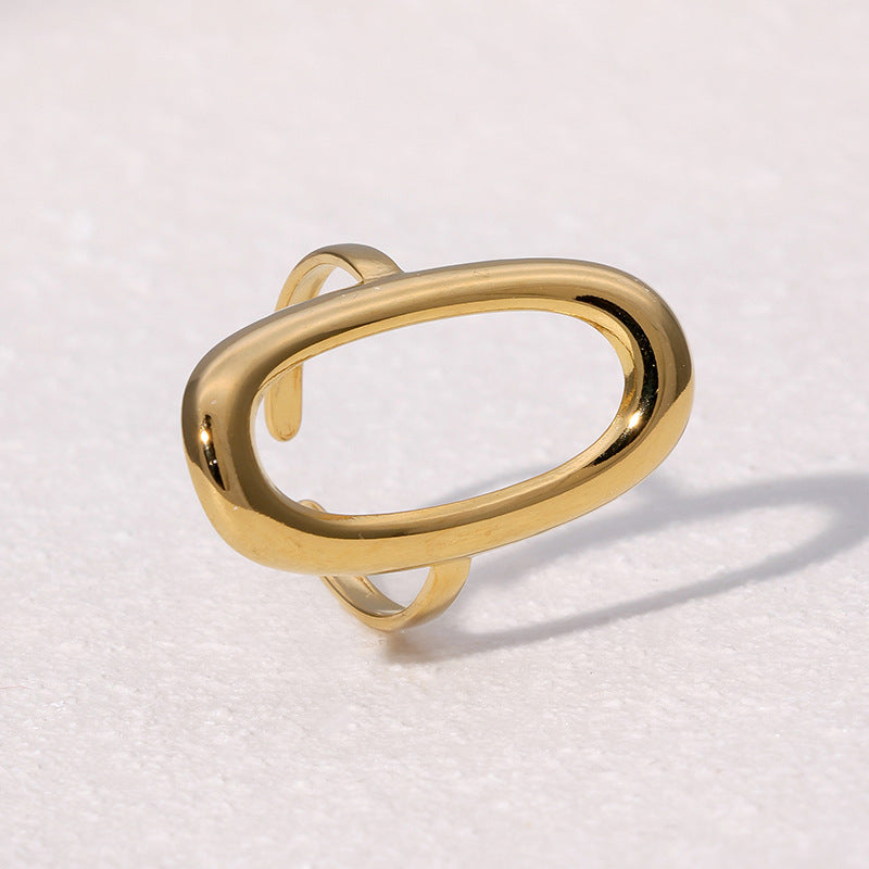 Minimalist Cold Style Stainless Steel Ring Female Geometric Hollow Oval Simple Gold-Plated Open Ring