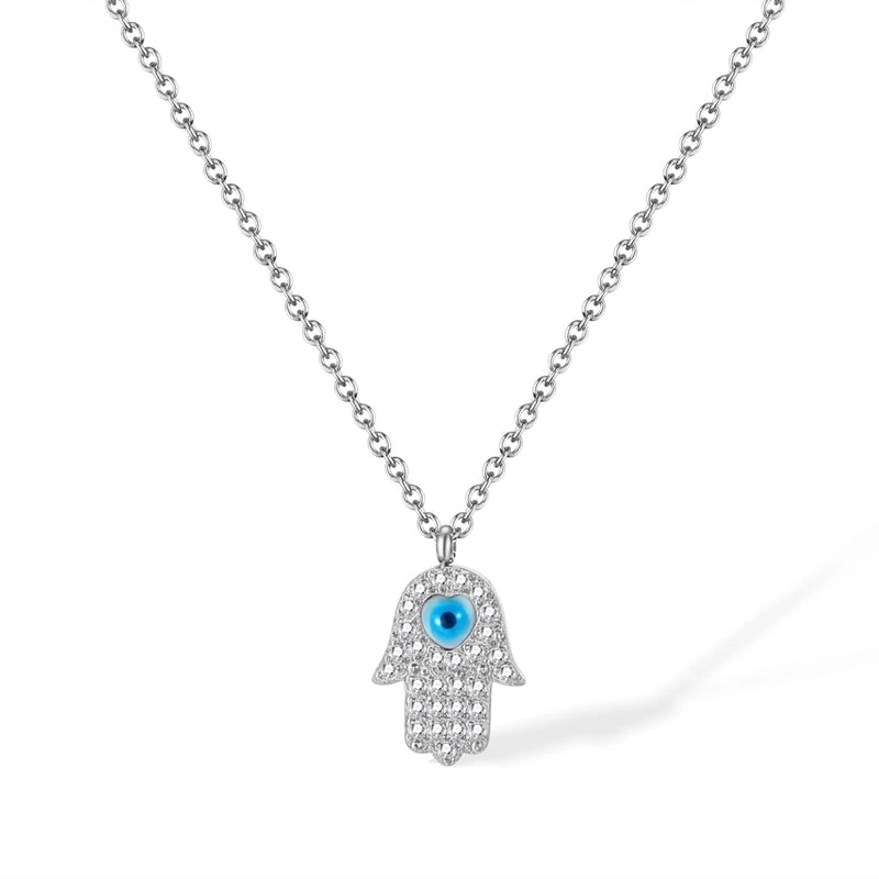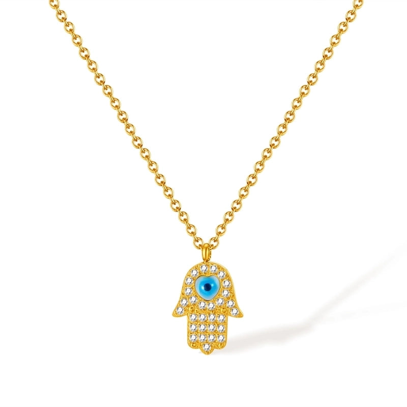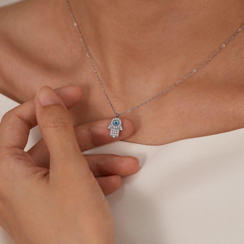 Minimalist Commute Devil’s Eye Palm 304 Stainless Steel Rhinestones Inlay Pendant Necklace