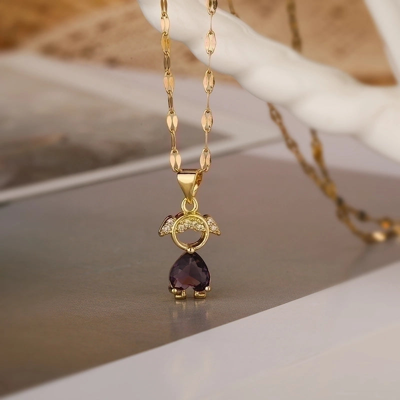 Minimalist Commute Human Copper 18k Gold Plated Zircon Pendant Necklace In Bulk